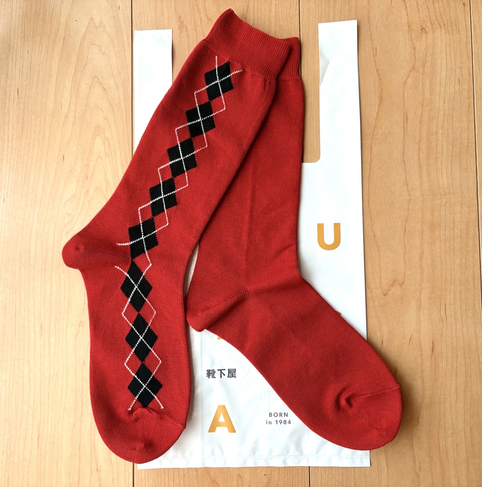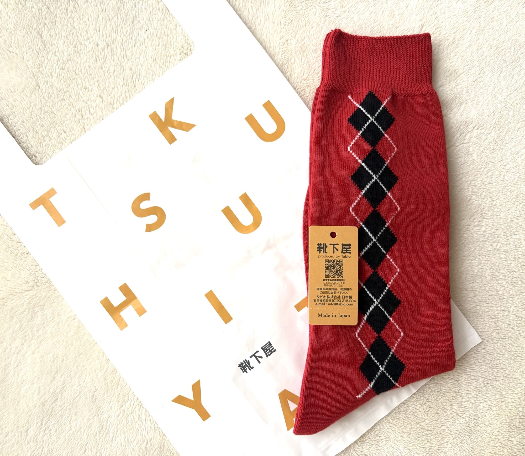 控え目なアーガイルながら、落ち着いた赤でしっかり秋冬を感じられる素敵なソックス。
