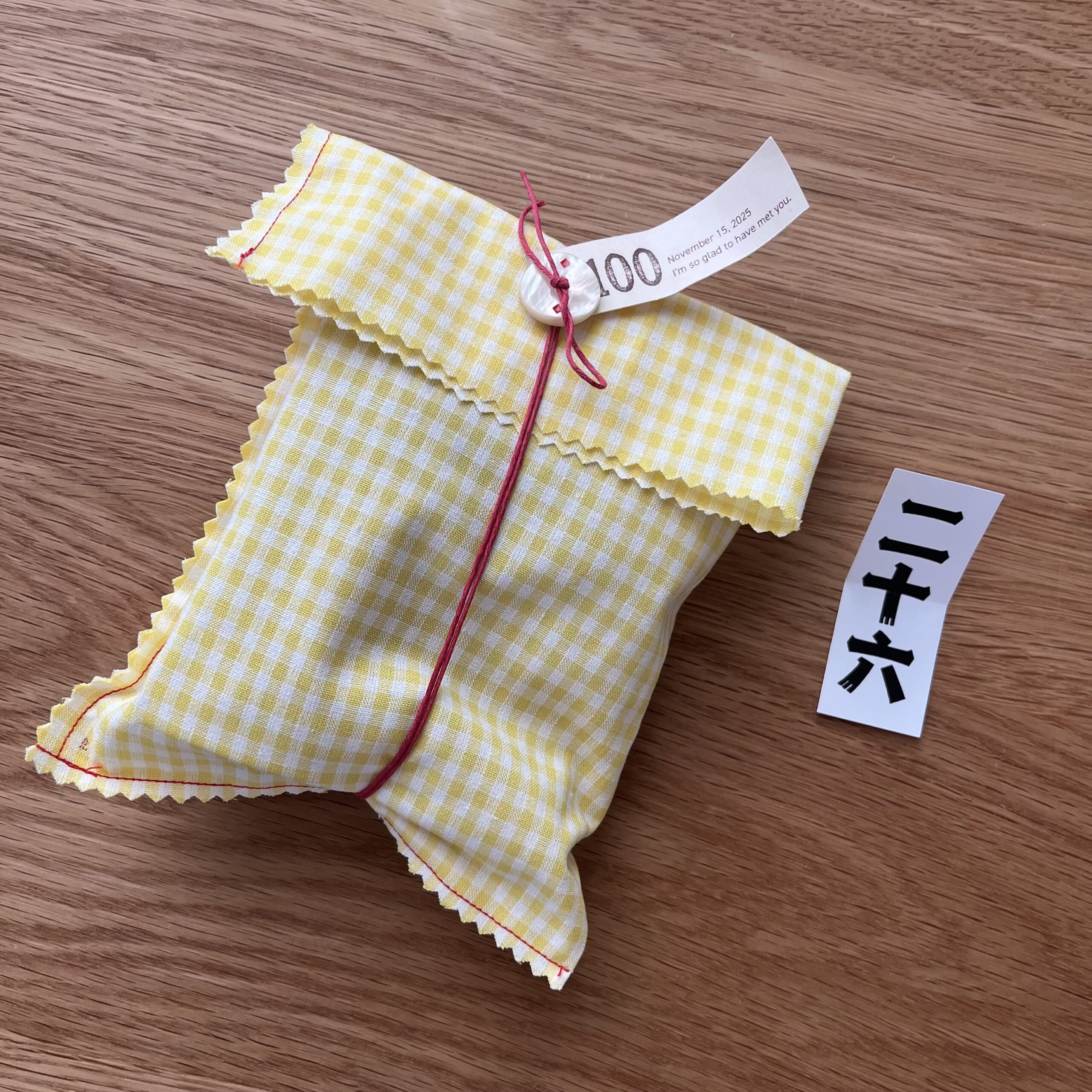気づいていちこちゃんに連絡してみると、やっぱり手作りで、黄色チェック生地はいちこちゃんの手作りブログで紹介されているもので作ってくれたとのことで、さすがすぎて感激でした!