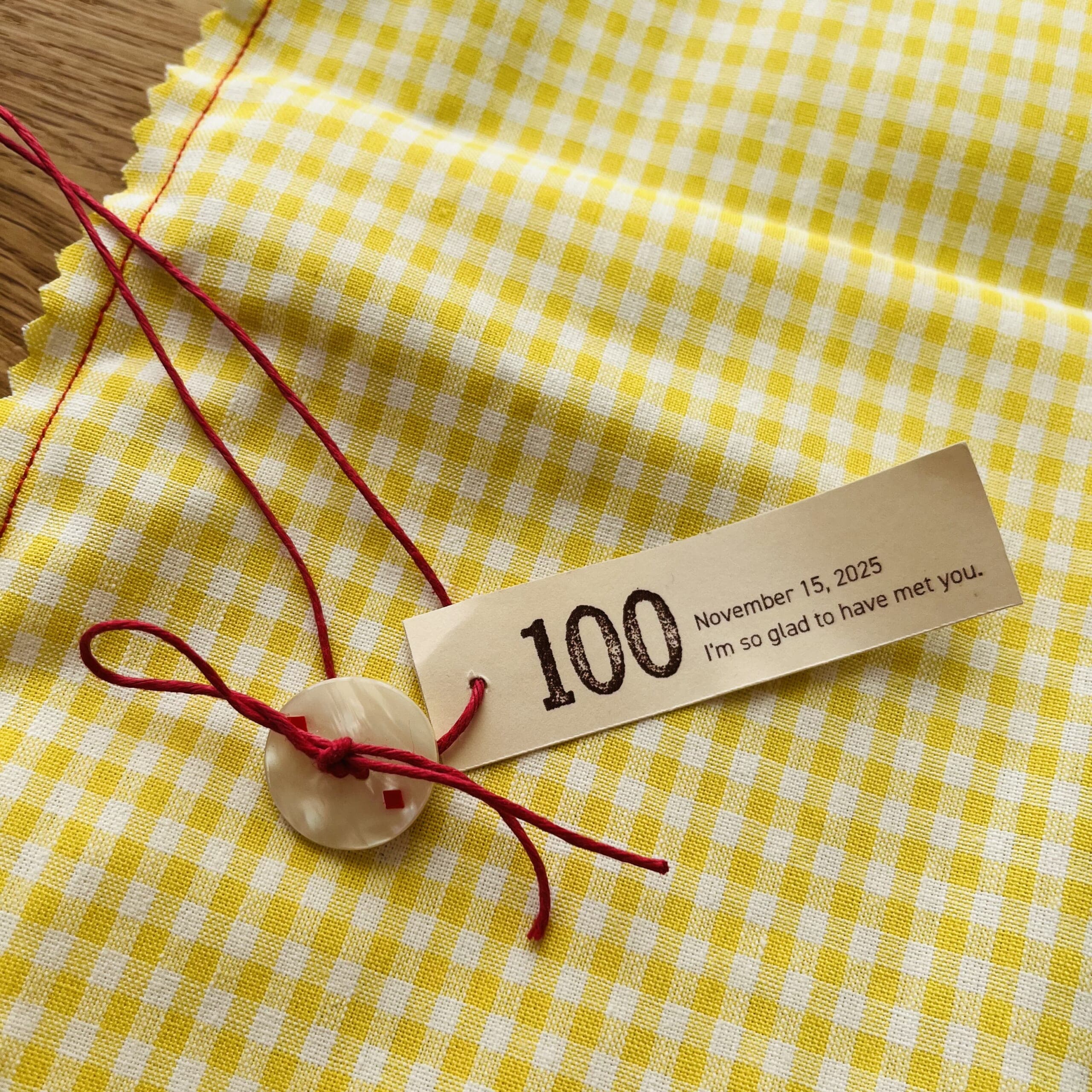 帰ってから気づいたのですが、なんとタグに『100』の文字とパーティーの日の刻印が!