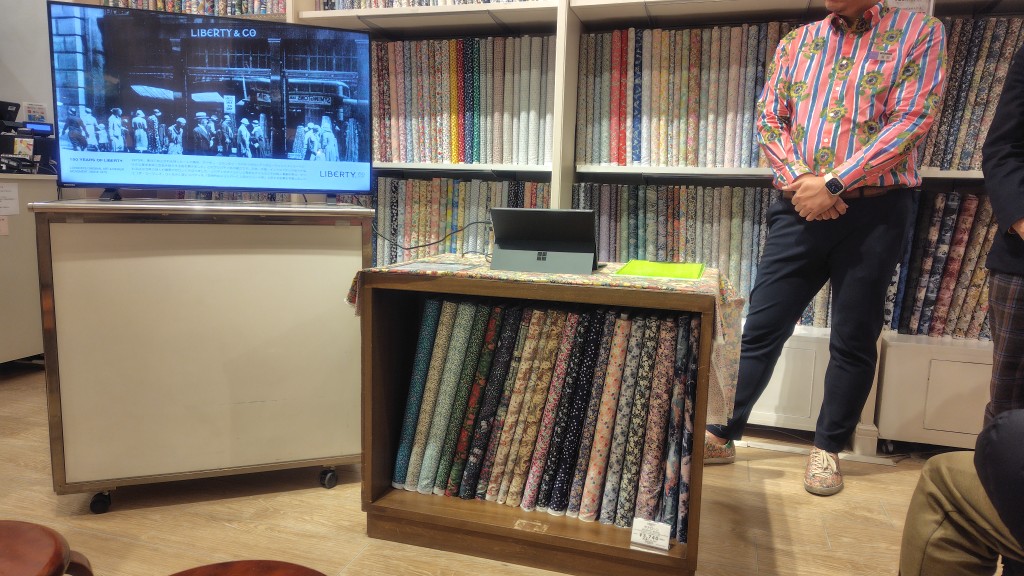 今期のリバティの新作も目移りする素敵な柄が沢山で困ってしまうのですが、柄の説明をしながら実際の生地を回してくださるので、「これはパンツかな♪」「これは、息子に着てほしいかも!」と、イメージしやすく、柄の説明プラス「パンツにすると脚長効果が!」とか「アパレル会社から1番受注があった柄です!!」等補足説明をしてくださるのでお買い物の参考になりました。