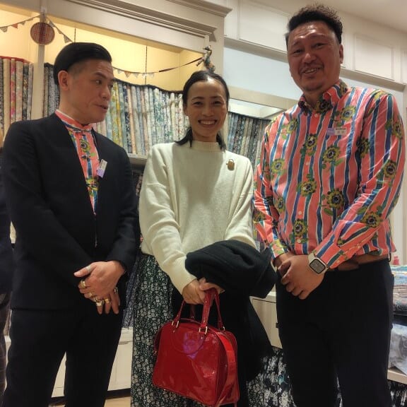 お店に着くと、皆さんお気に入りのリバティのお洋服を身に着けた方がたくさん!なのですが、社長さんは、片っ端からその柄の名前や布が日本製かイギリ製かサラサラ〜っと答えられ、掴みはOK!
