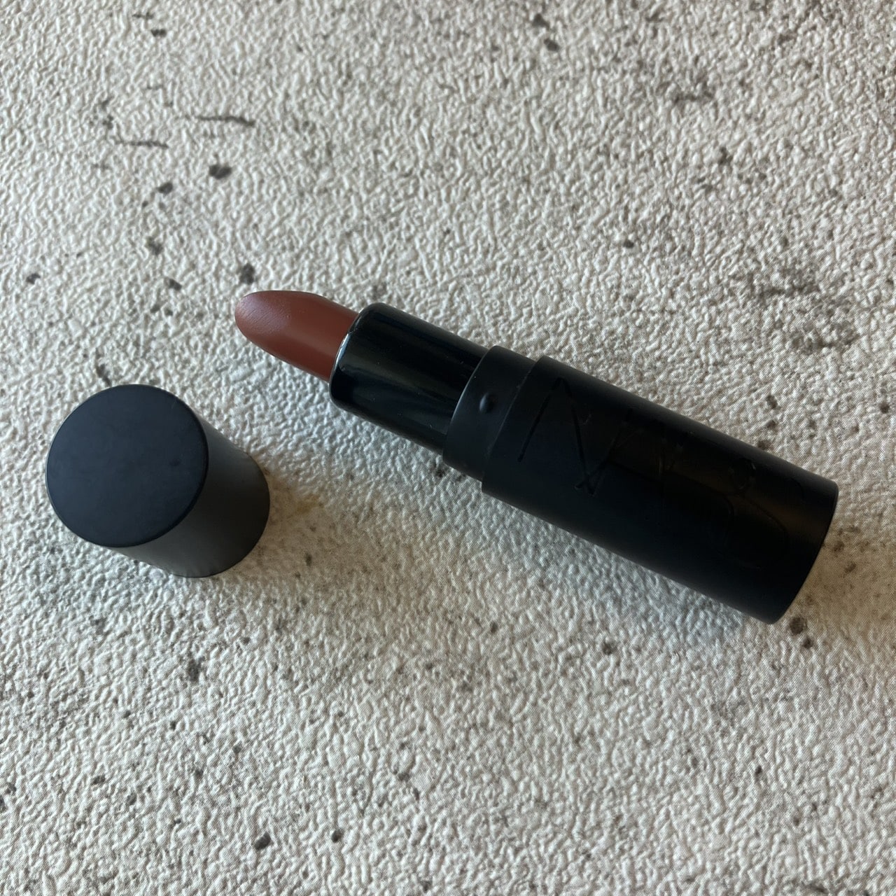 濃いめのカラーですが赤みの強いブラウンでとてもつけやすく、おしゃれ感を出してくれるリップも大事なアイテム。