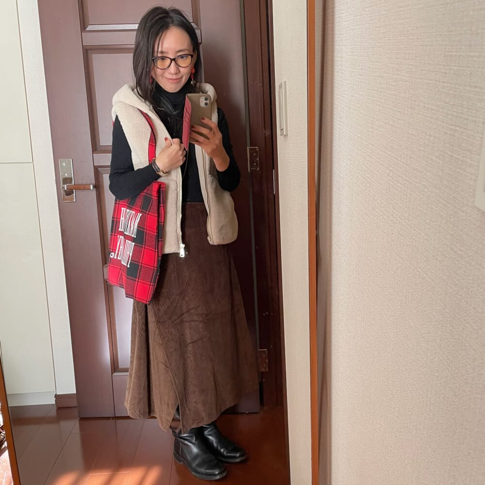 ①最高気温19℃、カジュアルver. “+ボアベスト”