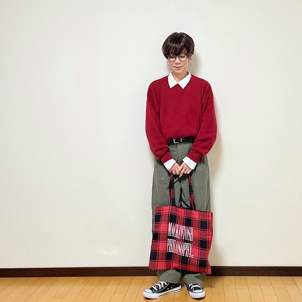 今季は“赤”を差し込む着こなしに気分が上がっていて、ちょこちょこ取り入れています。