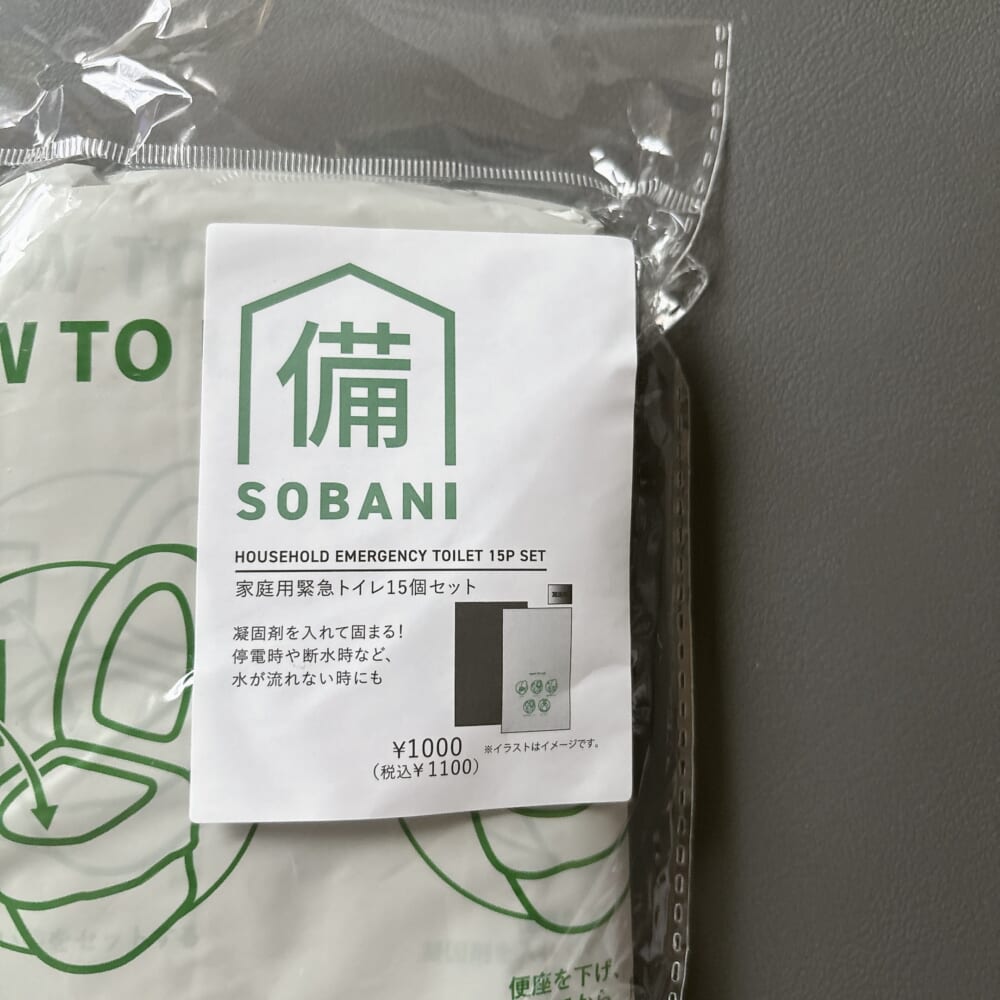 スリーコインズの防災グッズ『備-SOBANI-』シリーズの家庭用緊急トイレ。7月の地元の津波警報後に家庭の防災グッズを見直し、購入していたもの。