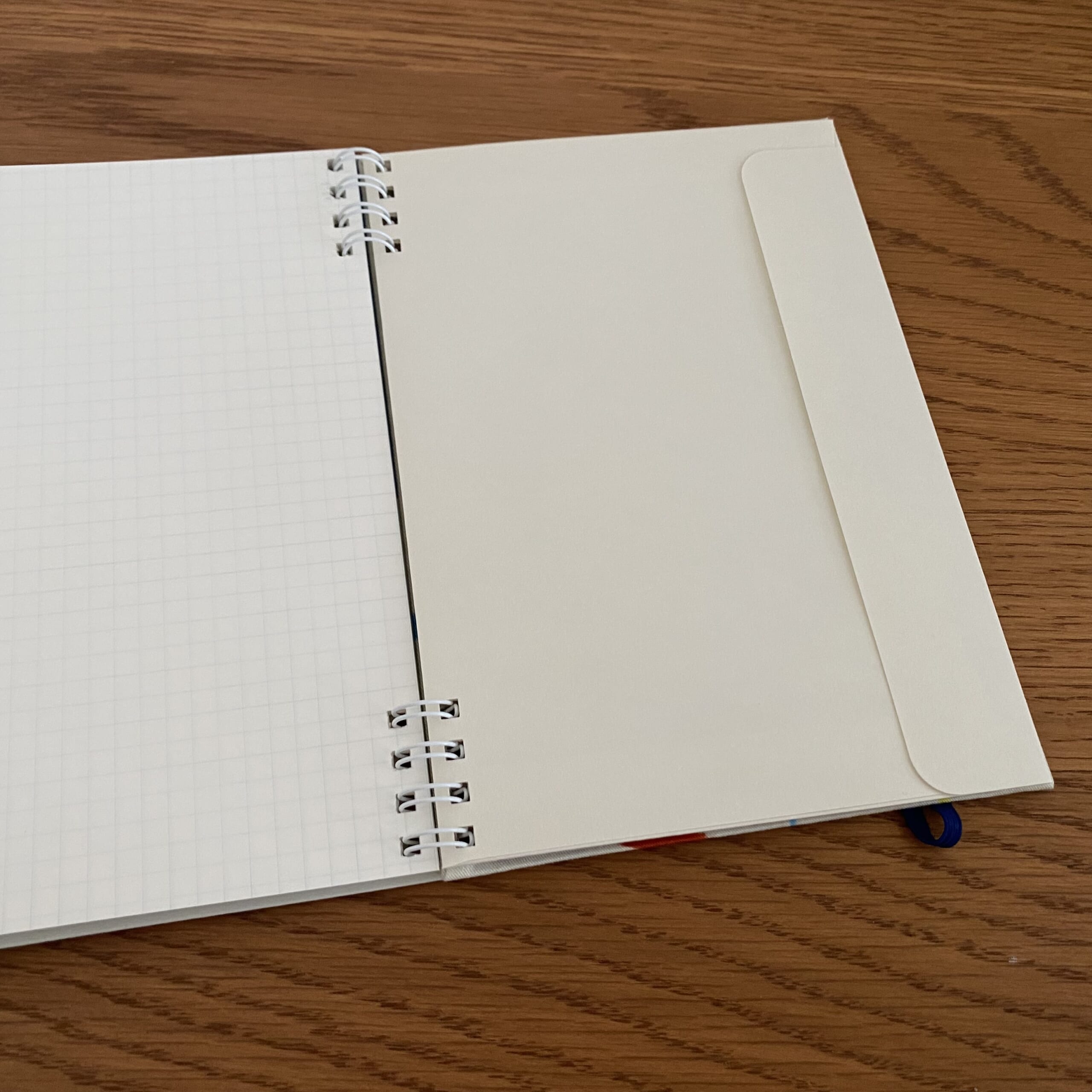 紐で留められるようにして、リングは書きやすさを重視して、真ん中が空いているタイプに↓