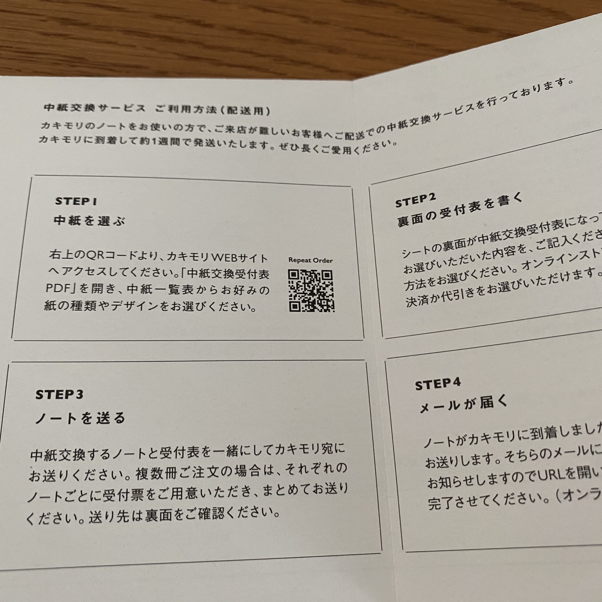 なんと、中紙の交換サービスをされているとのことで、地方組としてはありがたい郵送サービスもあるとのこと!