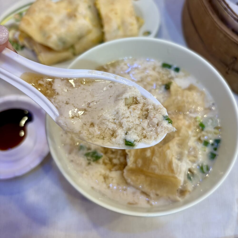 出汁の効いたスープと黒酢が、豆乳をふるふるに凝固させ、優しくて朝にぴったりな味。