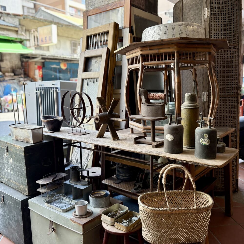 お店の外にも、素敵なビンテージ家具や雑貨がたくさんディスプレイされています。