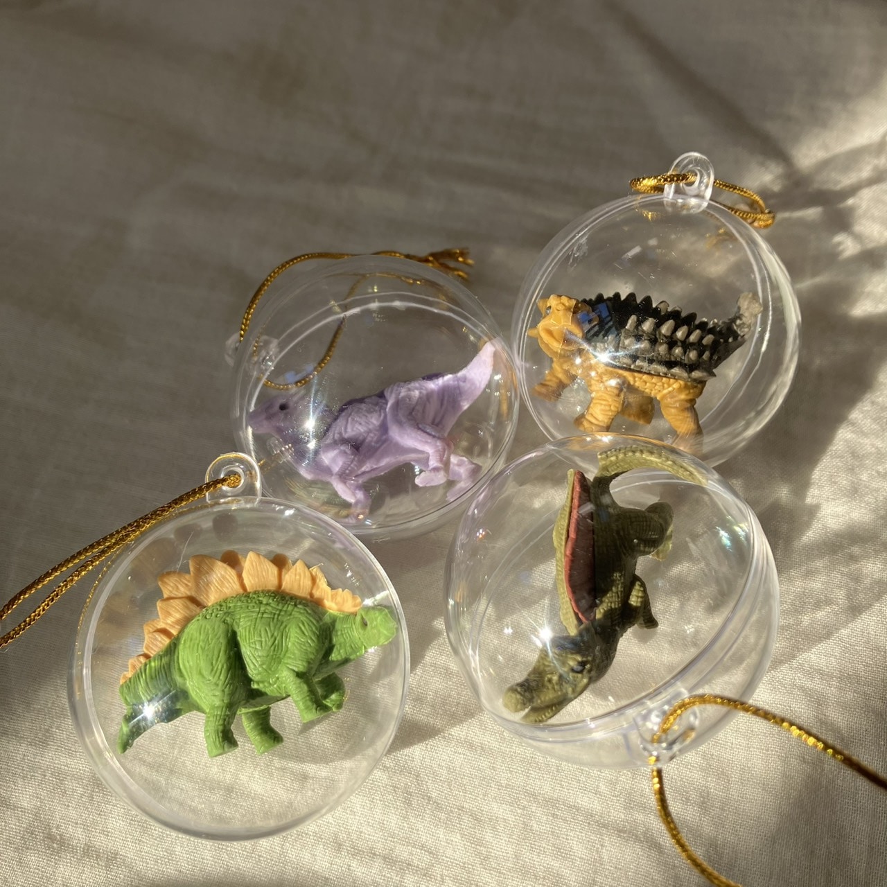 うちはまだチョコを食べていないので、今年はダイソーのクリアボールに同じくダイソーの恐竜消しゴムをいれてみました。