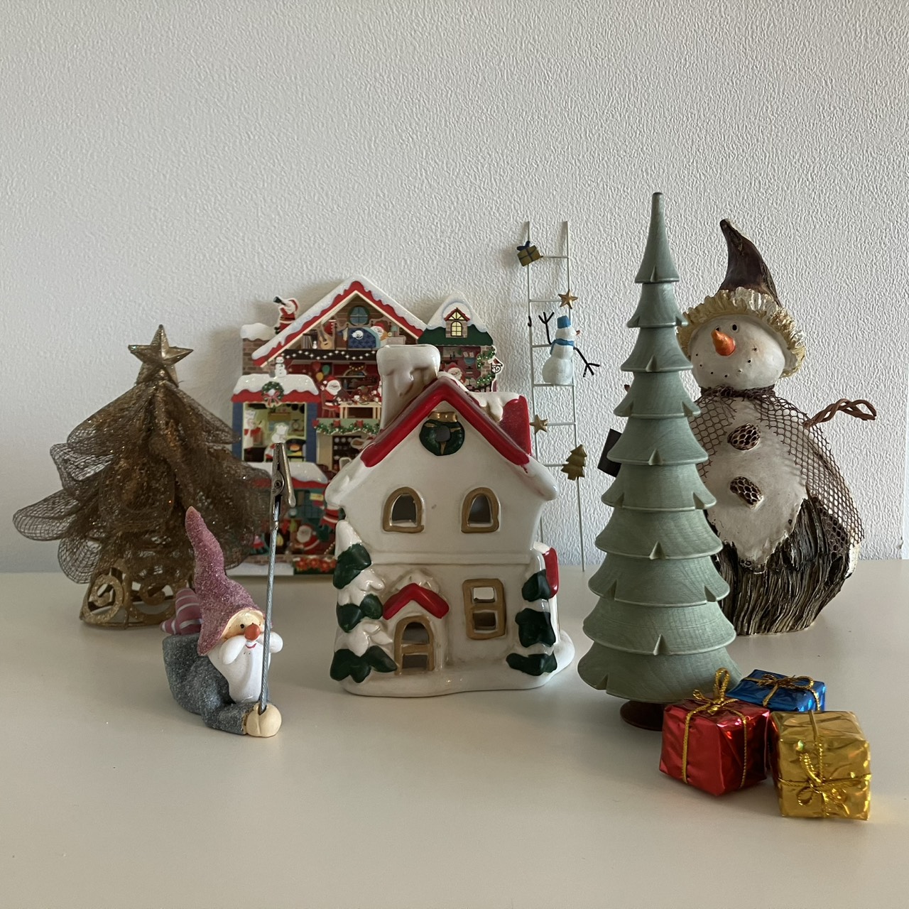 少しずつ集めたクリスマスの置物を部屋のあちこちに飾るのも好きですが、今年は部屋の一角にクリスマスタウンを作ってみました。