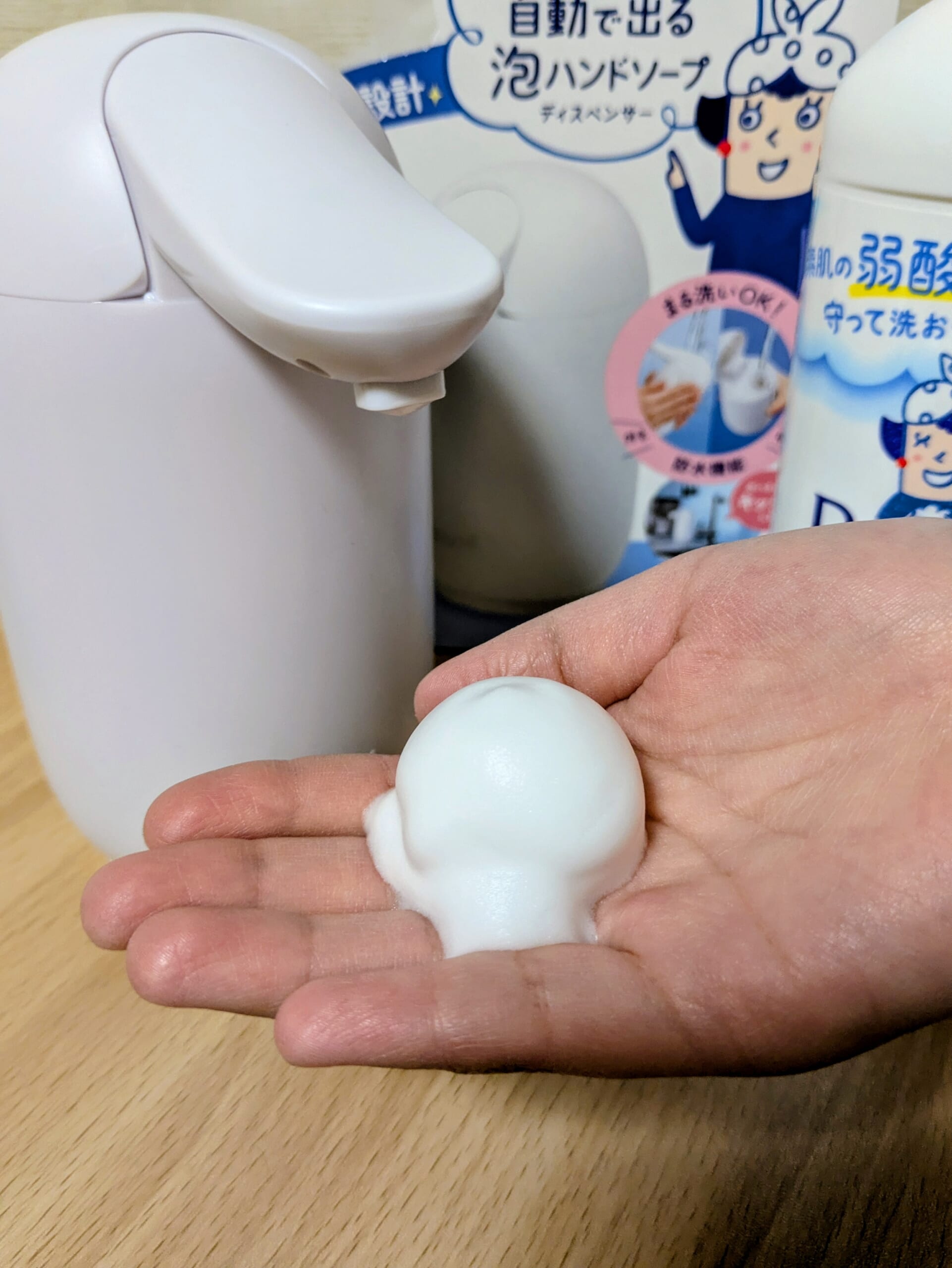 手を出すと自動でなめらかなまんまるの泡が出てきます