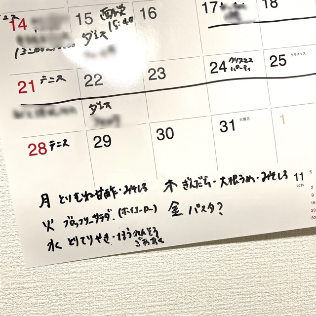 うちの使い方その①献立を書いておく/ほぼ日ホワイトボードカレンダー