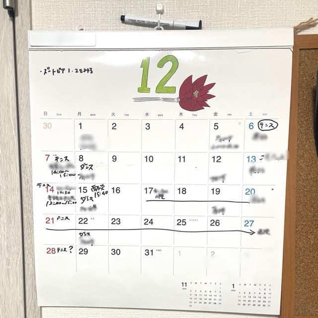 息子が小3になり、学校から帰ってきて一人で習い事に行くことになったので、「リビングにみんなの予定がわかるカレンダーがあった方が良いよね」と、こちらのカレンダーを使うことに。