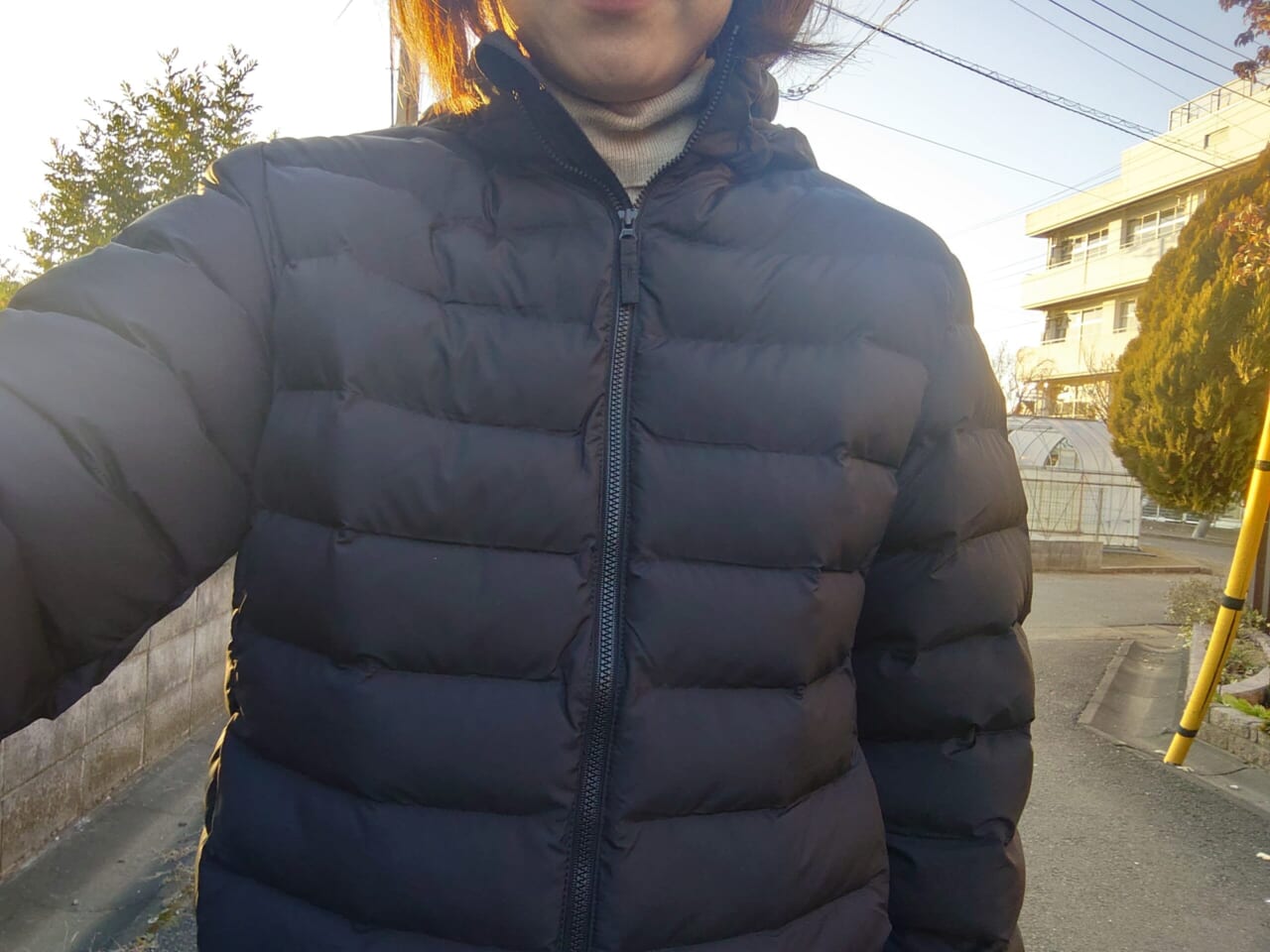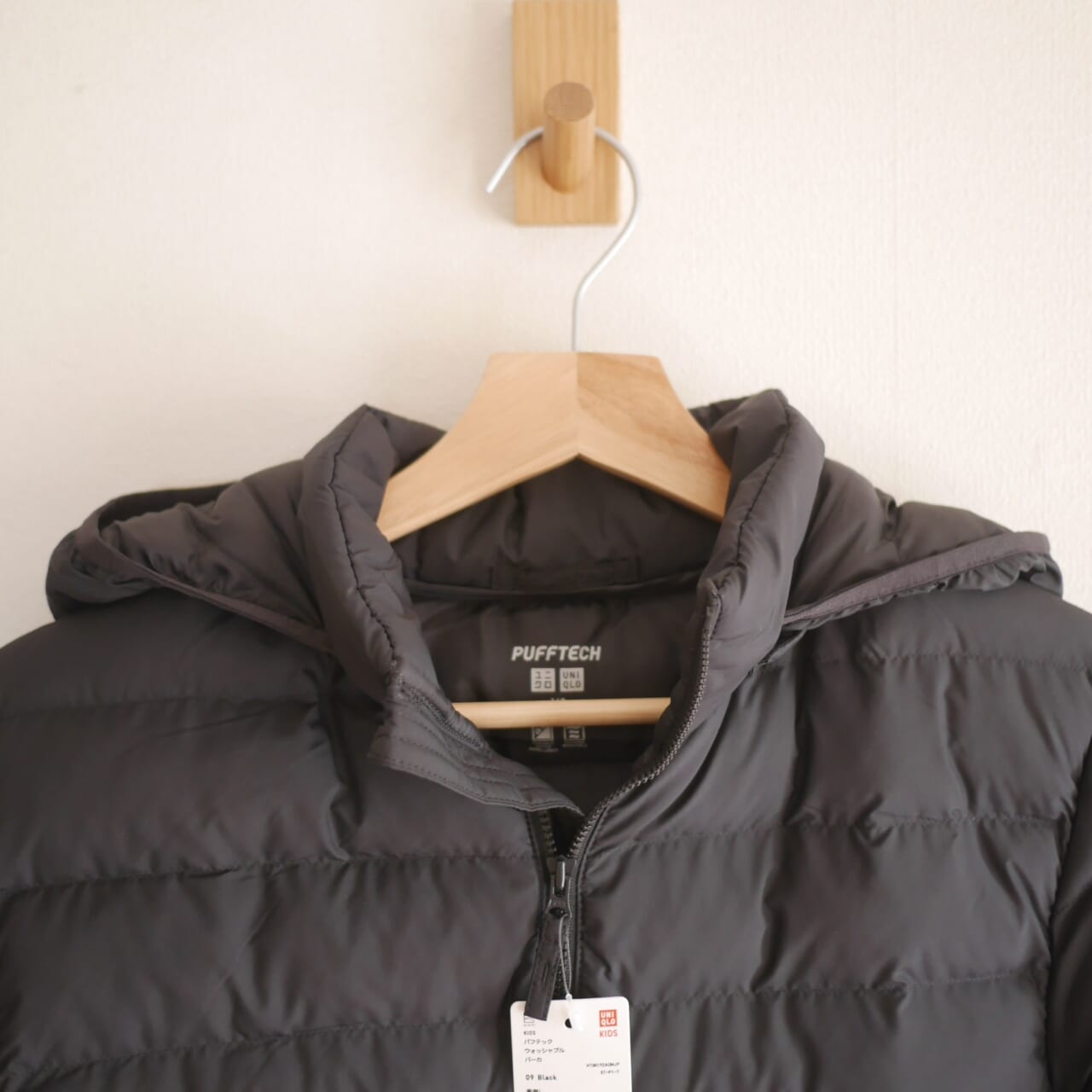 ユニクロの「パフテックウォッシャブルパーカ」。黒の160を購入しました!