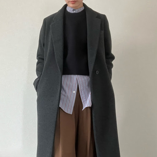 ユニクロシーのロングコートは、店頭で羽織った瞬間「買い!」ってなったほどシルエットがキレイなんです。
