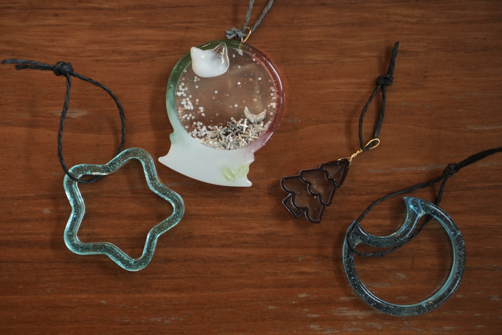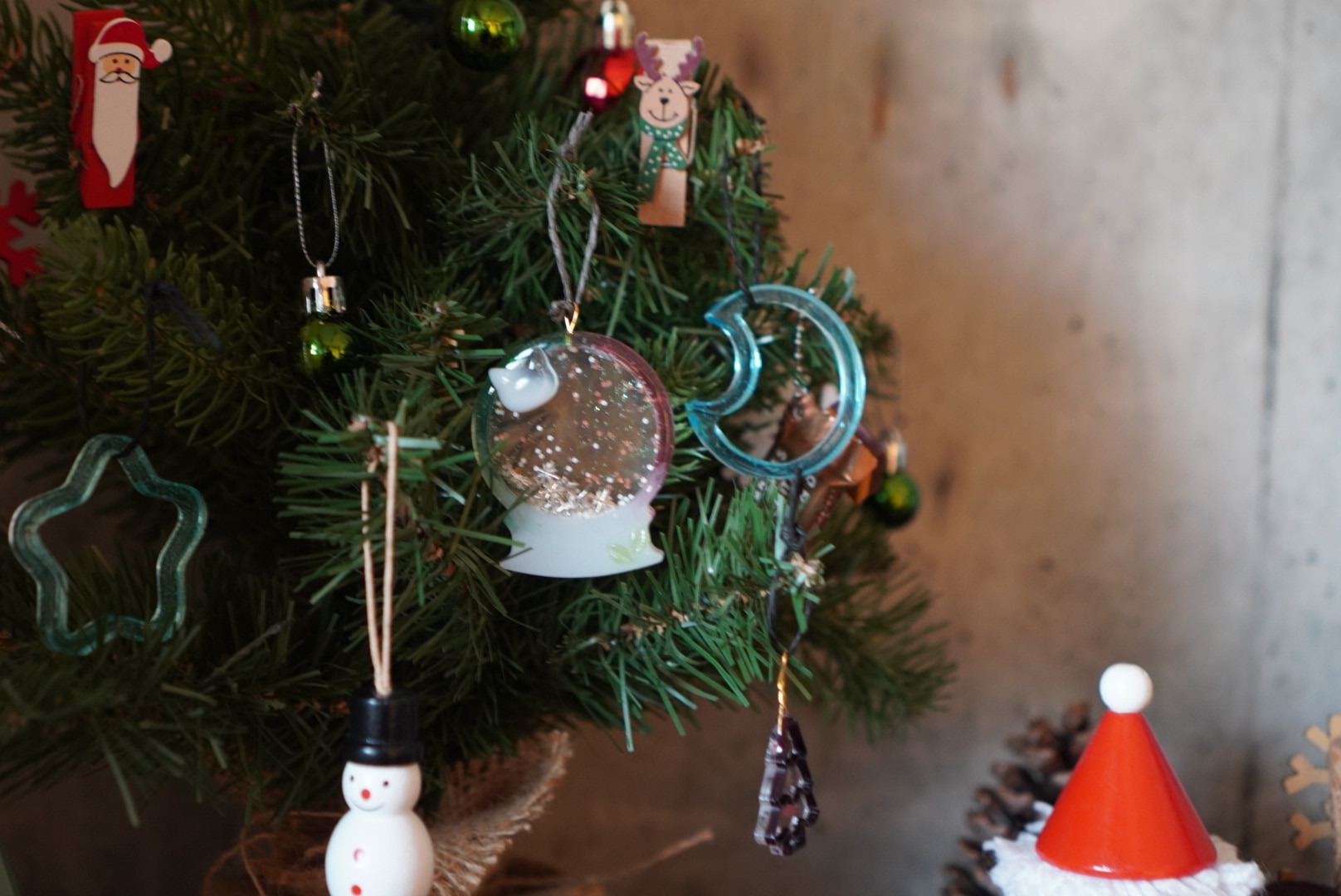 オーナメントは雑貨屋さんだったり100円ショップだったり、その時々で気になったものを飾っているのですが、今年はレジンで作ったオーナメントをプラスしました。
