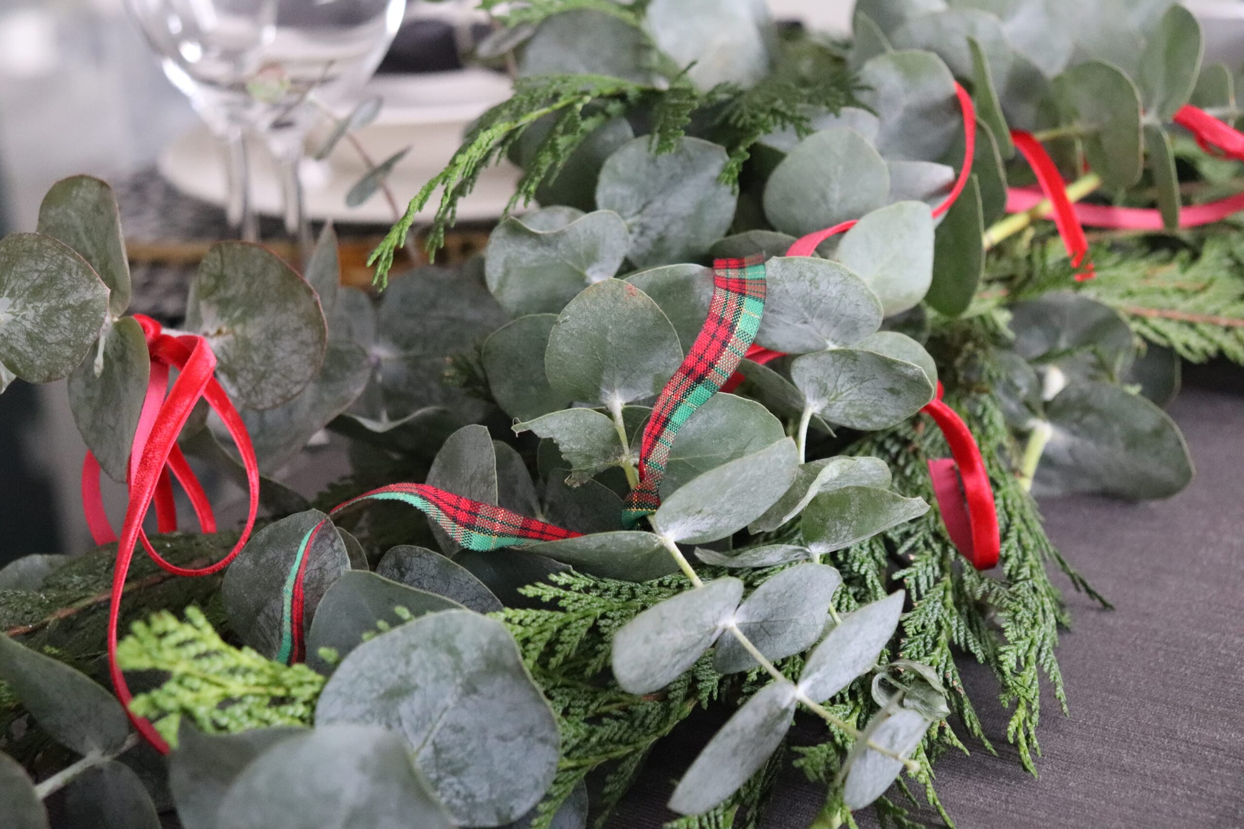 中央にツリーに見立てたグリーンを置くと華やかに。