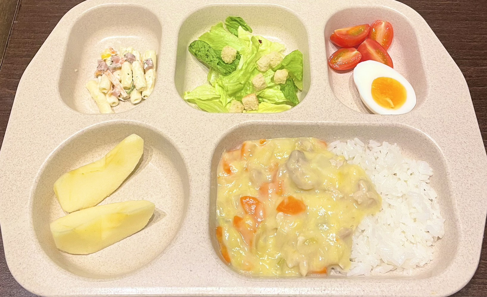 シチューが”汁”と“菜”を兼ねて汁物なし♪