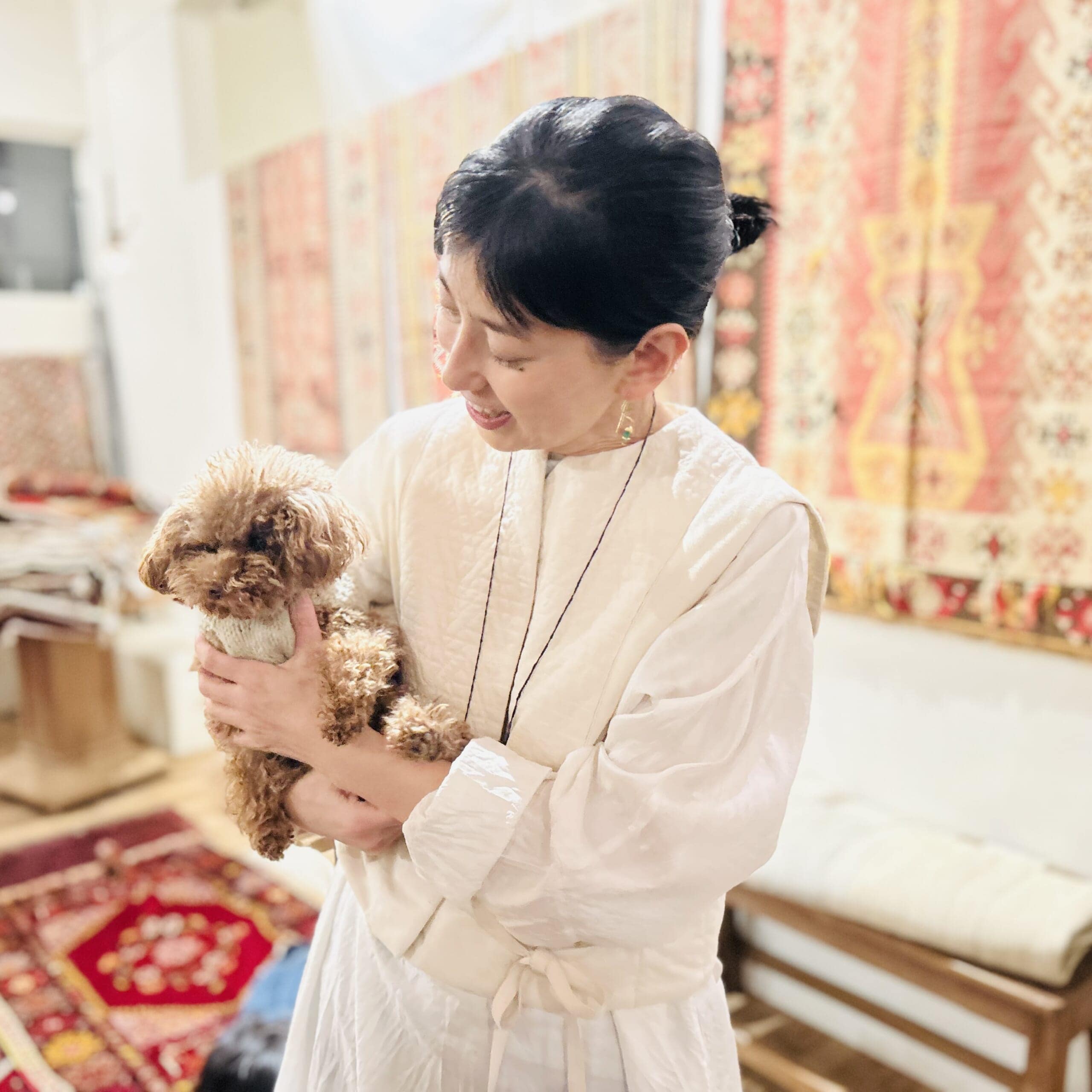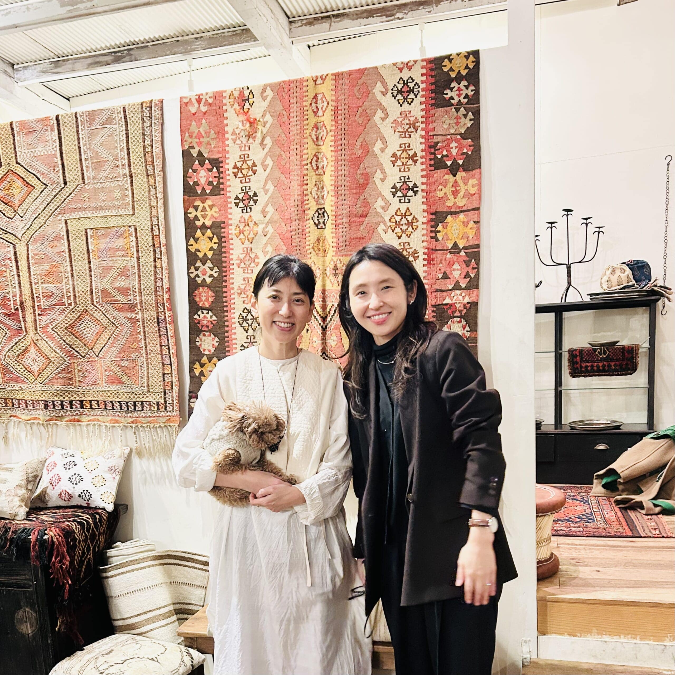 扉の前のラグに興奮しながら中に入ると、「寒いので中にどうぞお入りください」と優しい平井さんに案内され、一気にラグの世界へと没入!
