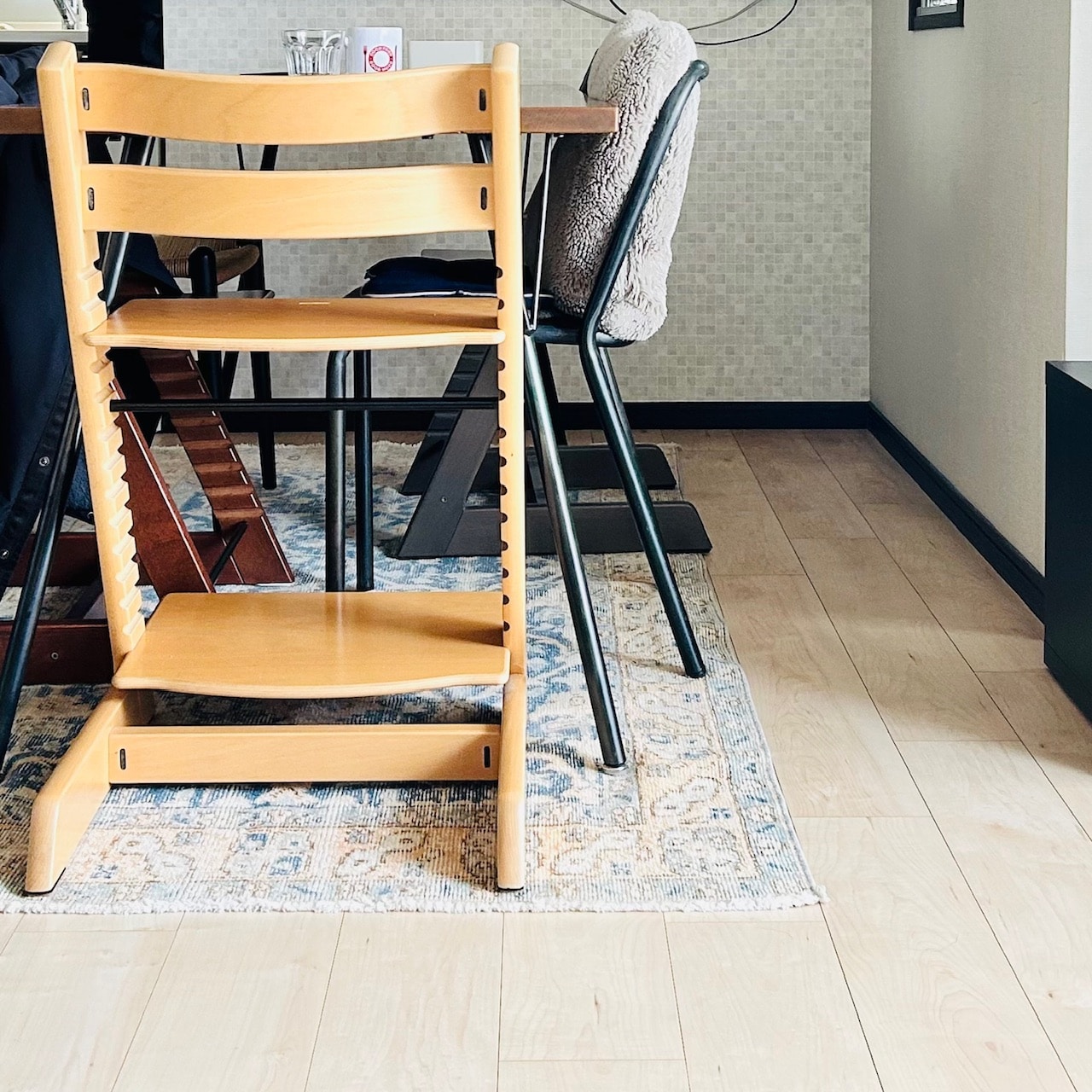 インテリアレッスンでの学びも思い出しながら、石井さんにも相談し、以前から気になっていた、毛がすり減った感じがオシャレな、パイル織りのラグをリビング用に購入。