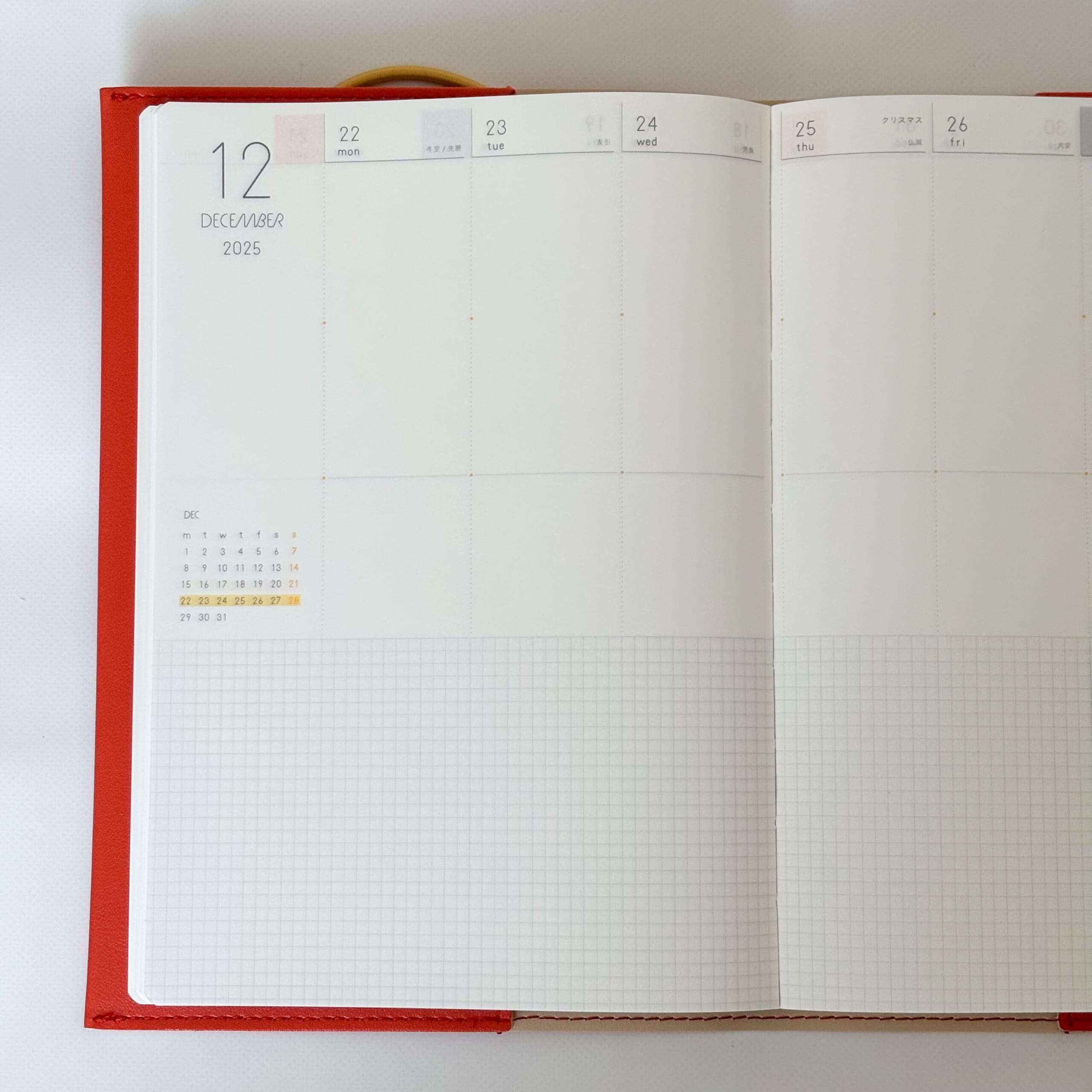 そんな我儘な私にとって、時間軸の書かれていないバーチカル方式とページの下半分がフリーになっている「SUNNY手帳」の自由度は理想的でした。この自由度が2026年の手帳を選ぶ決め手になりました。