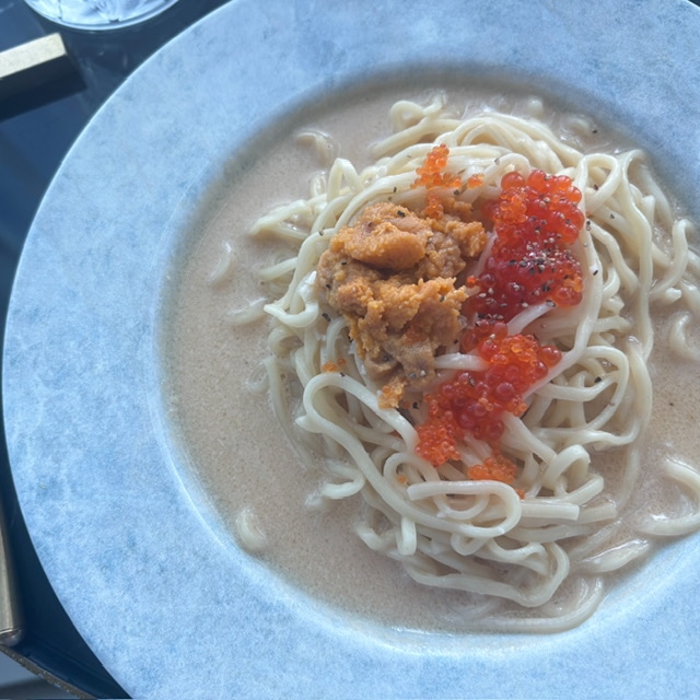 ホテルブレッドを挟み、お目当ての濃厚うにクリーム麺が登場~♩