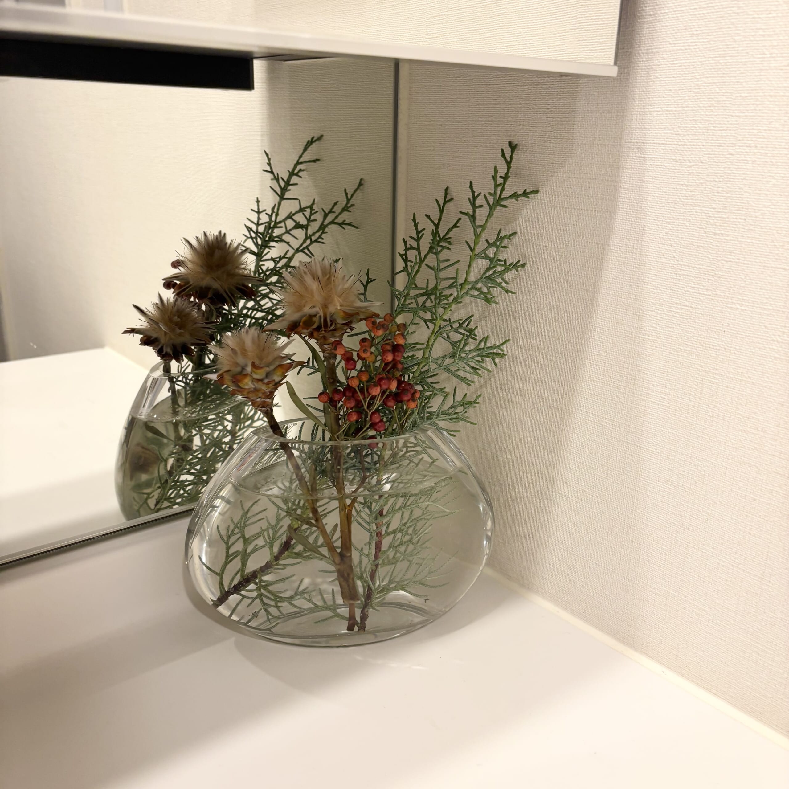 我が家は、花瓶を置ける場所がキッチンカウンターくらいしかないのですが、そこにちょこんと置くだけでも、季節感を楽しめて十分。