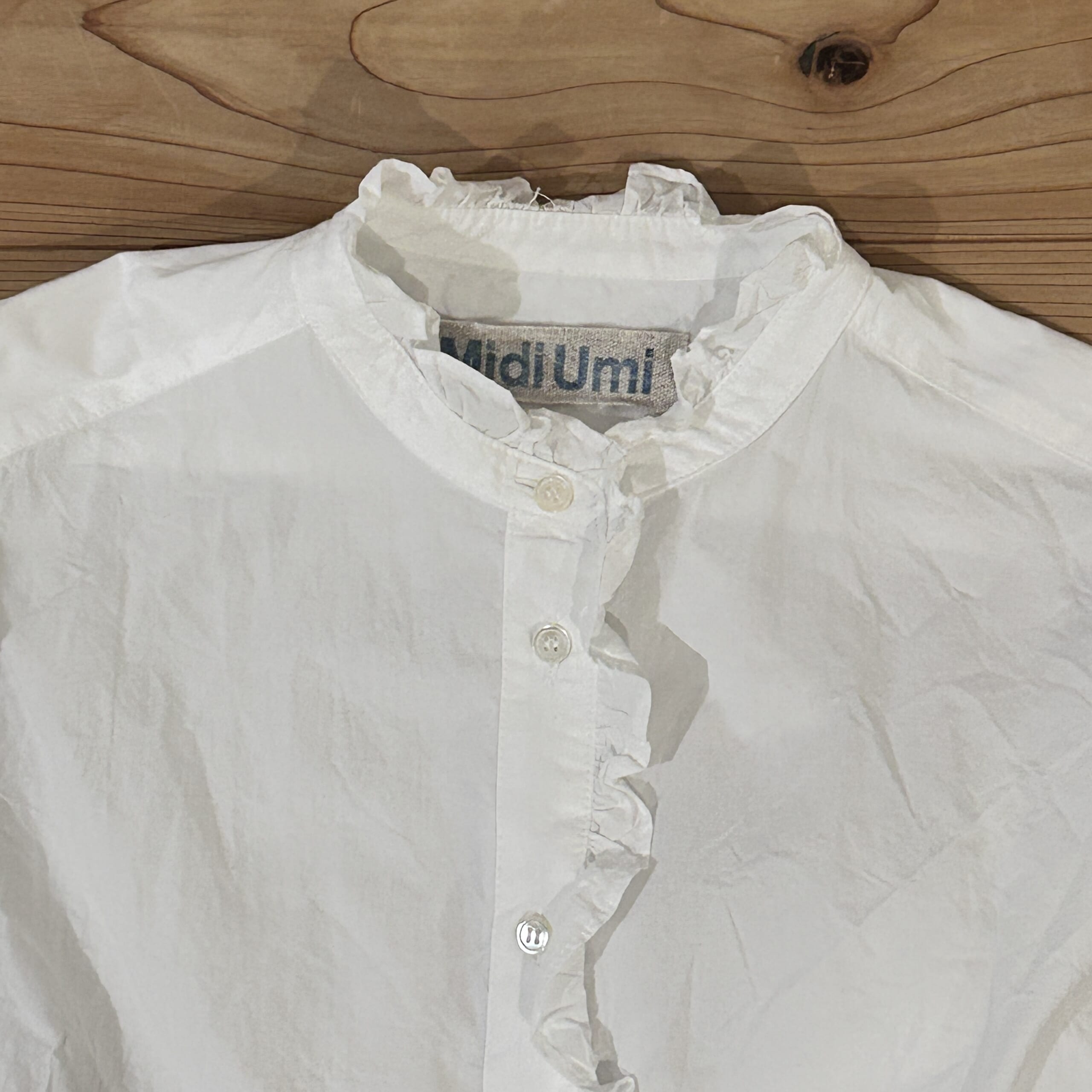 MidiUmiのフリルシャツはナチュラルな雰囲気と首元のフリルが控えめでちょうどよかった!