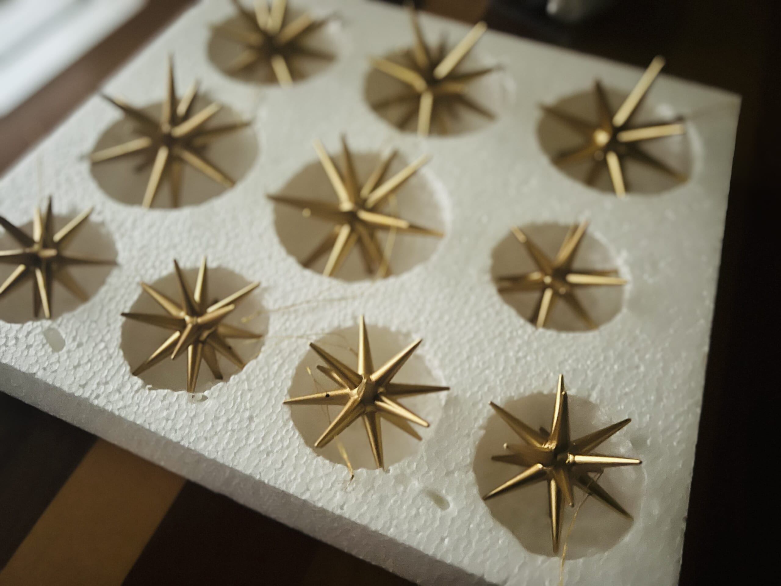 やっぱり外せなかったベツレヘムの星。枝にぶら下がった時の光の集まり方や陰影の揺れは、ただの飾り以上の存在感です。
