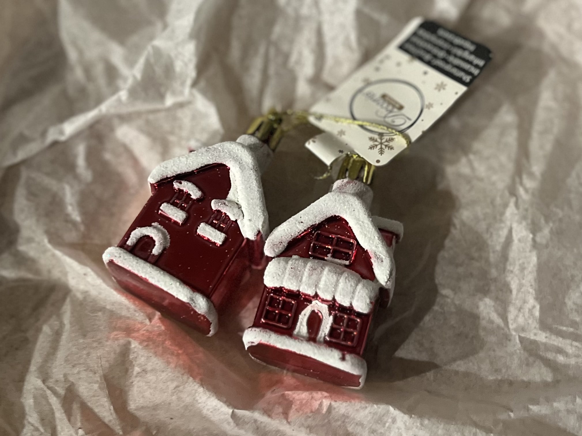 大人っぽいオーナメントばかりでは味気ないので、少しだけオランダのブランドKAEMINGK(カイミング)のハウスオーナメントも買い足しました。