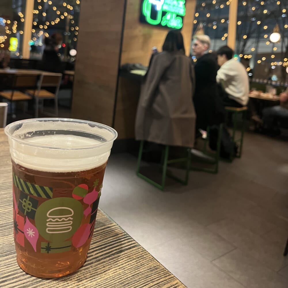 別の場所でも周囲にいらした方にお願いして、数枚写真を撮ってもらったのですが、その方から「緑の服と赤のバッグで、まるでクリスマスみたいだね!」と言われました。全くその通り! 意識していませんでしたが、結果的にホリデーシーズンにぴったりの、遊び心ある配色になりました。