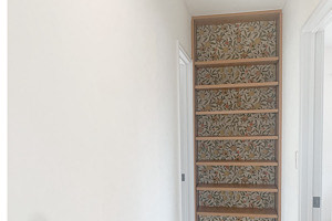 アンティークな柄に惹かれ、少し大人っぽい壁紙にしてみました。