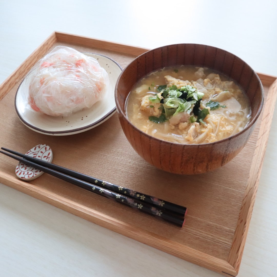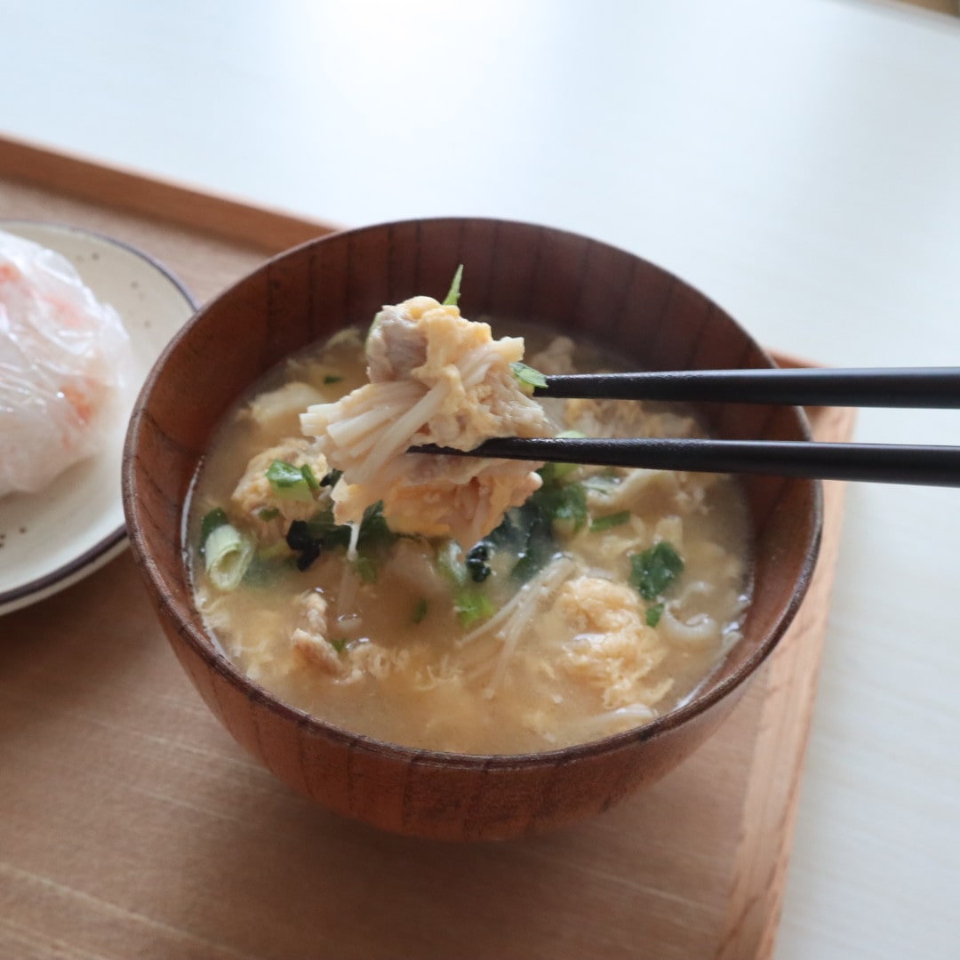 豚肉とえのきの旨みがしっかり出て、シンプルにご飯とえのたま豚汁だけでも良さそう!