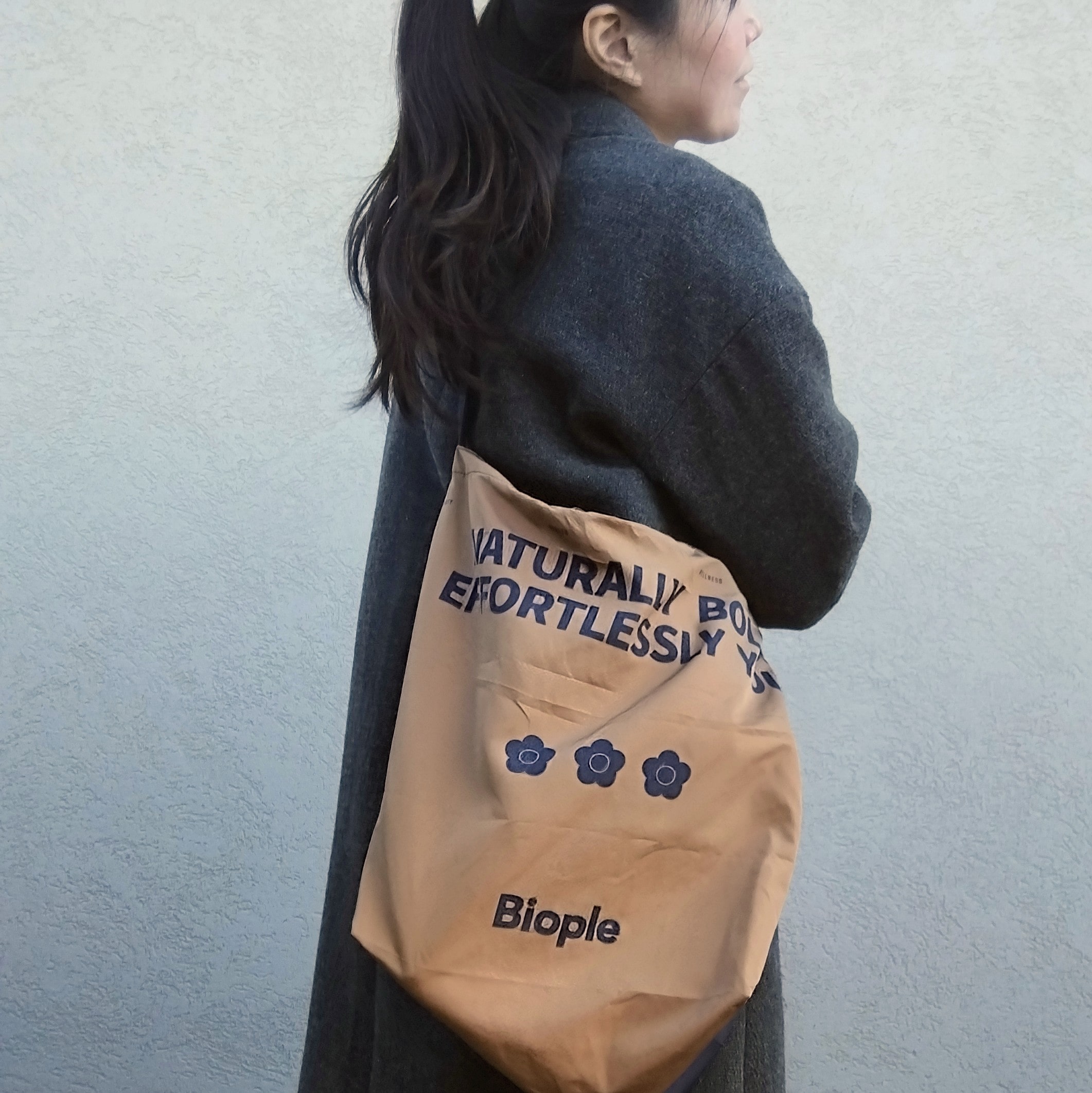 正直エコバッグとしては全体的に華奢な印象なので重いものは入れられないかも。多分中身はあえてスカスカにしてくしゃっと持った方がかわいいと思う。