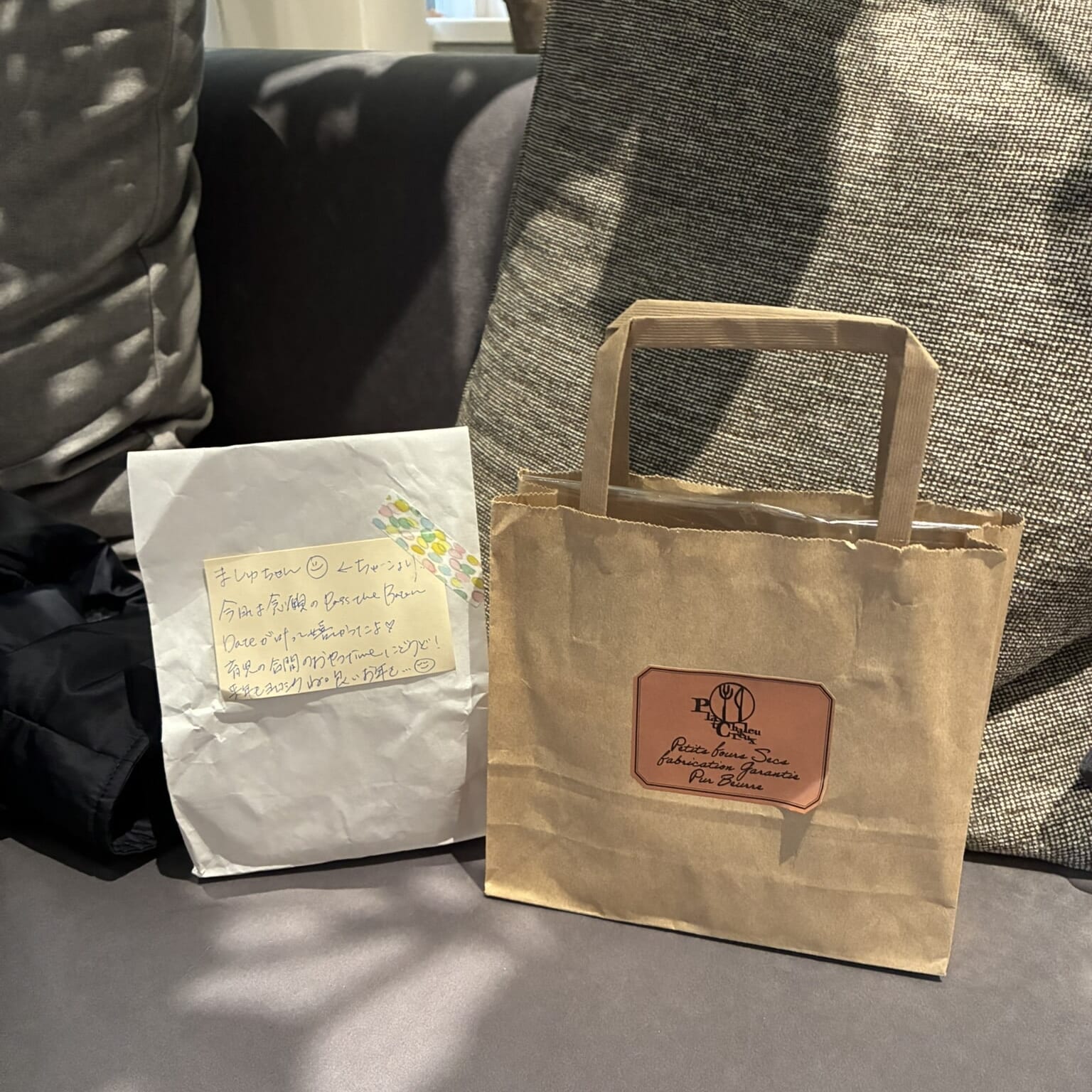ねぇねぇ、何買った?からトークが止まらず、お互いに買ったものを披露!買ったものこそ、「ヤマチクの箸」以外、被っていなかったのですが、ここから脅威のシンクロが始まり、驚きと笑いが止まりませんでした。お互いの手土産は「近所の美味しいパティスリーの焼き菓子&紅茶」。この日は冷たい雨の1日だったのとお買い物しているうちに袋がシワシワ(笑)