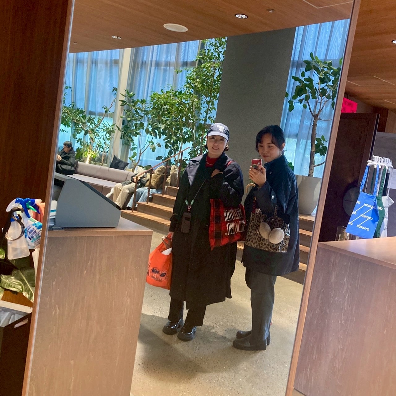 解散するときに、ましゅちゃんが撮ってくれた鏡越しのツーショット❤︎密かにLEEの付録トートを目印に持っていました!