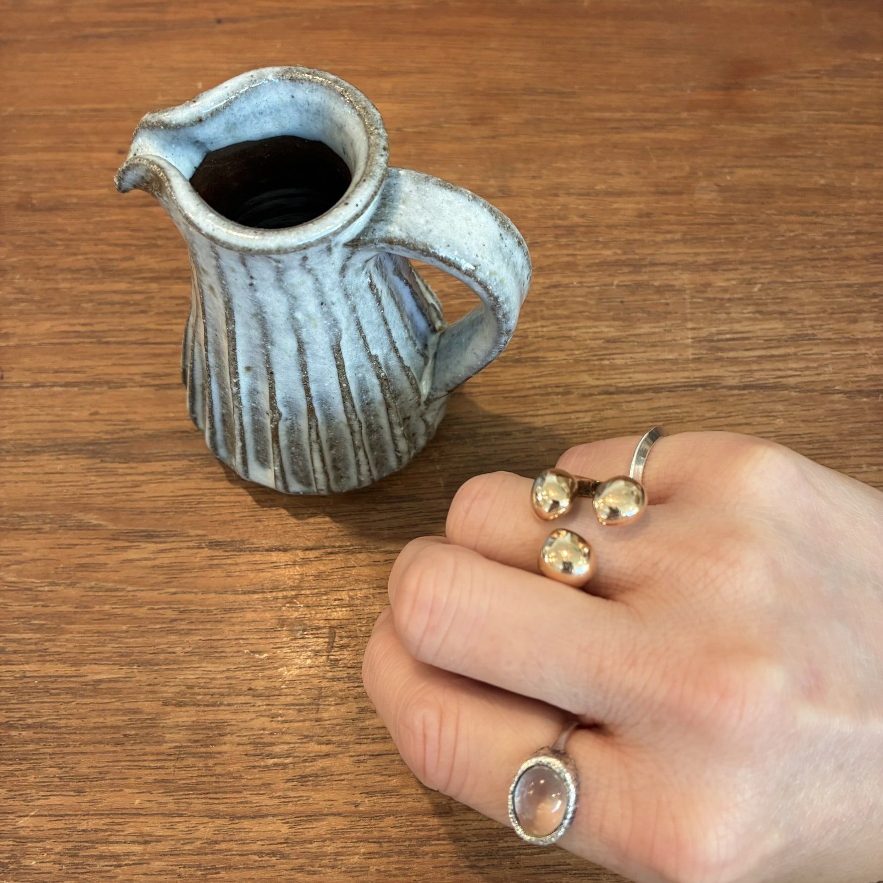 そして、ましゅちゃんが「小代 瑞穂窯」の可愛い器をアクセサリー置きに買ったという話をしながら、器を見せてくれました。「その店主の指輪が素敵でさぁ〜、その指輪がモニカなんちゃらっていうやつで、あ、ちょうどちゅーこちゃんがしてるような感じのやつだった!」