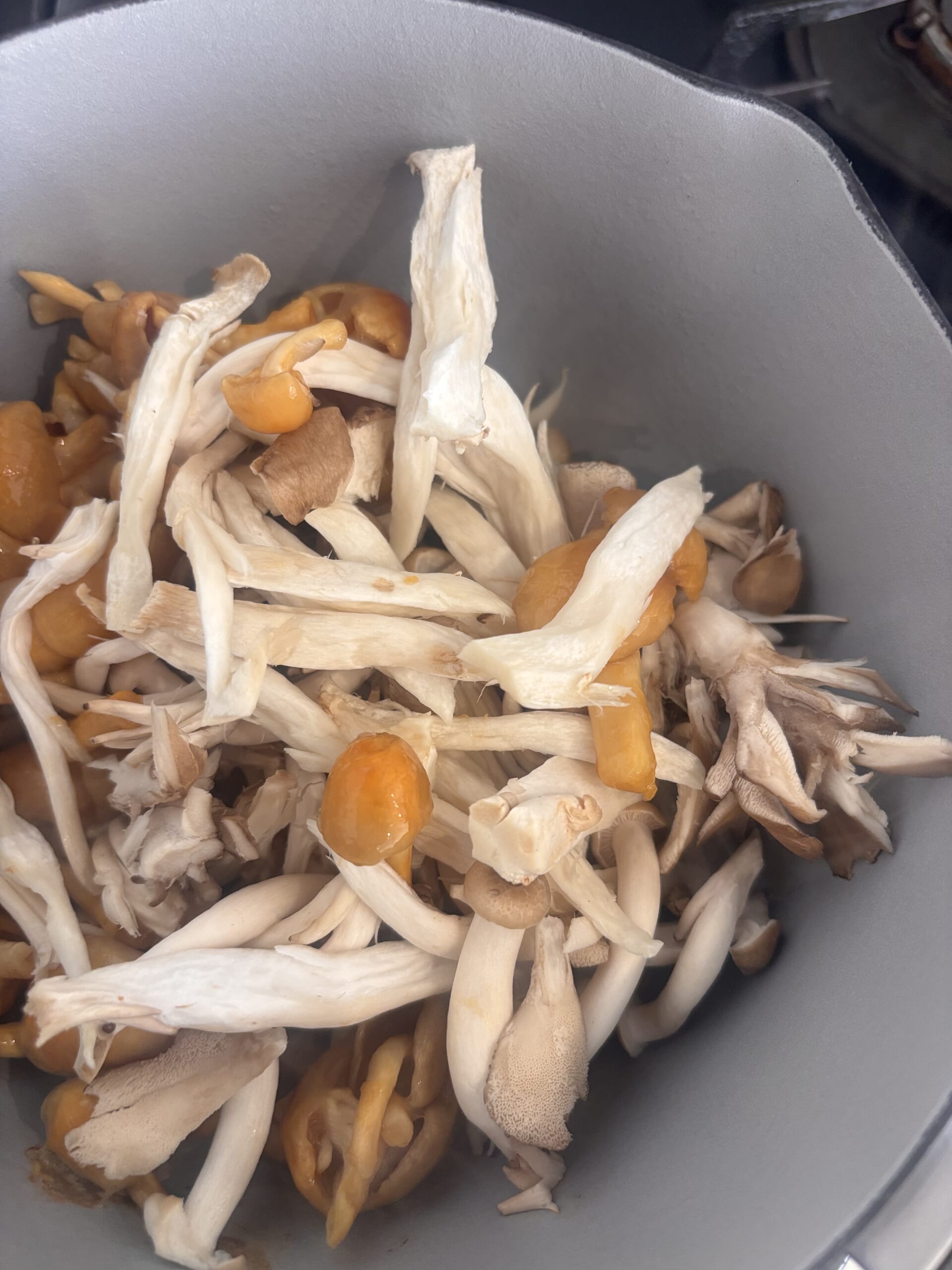 出汁は不要と書いてあり、本当に大丈夫なのか?と半信半疑でまず、きのこに塩を振り、時間をかけてじっくりと焼き付けました。なんだかすでに美味しそう。