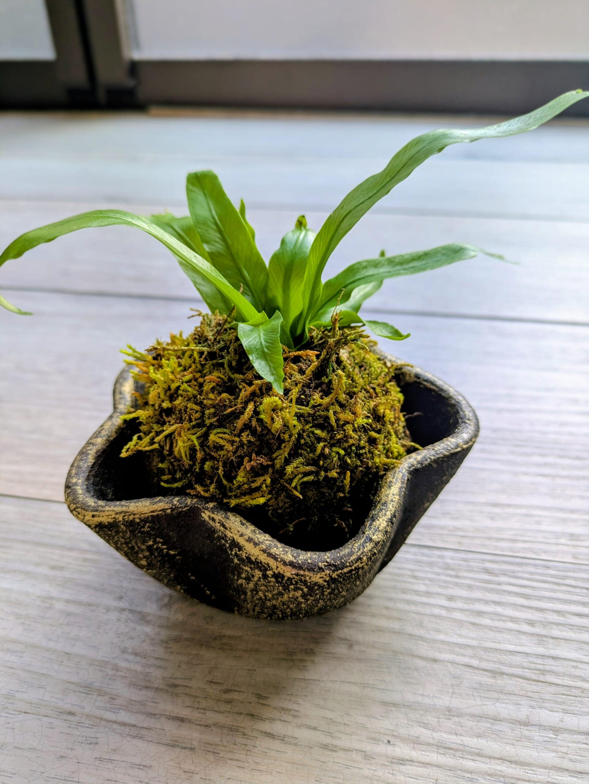このかわいらしい苔玉はなんと陶器の鉢付きで税込み200円でした