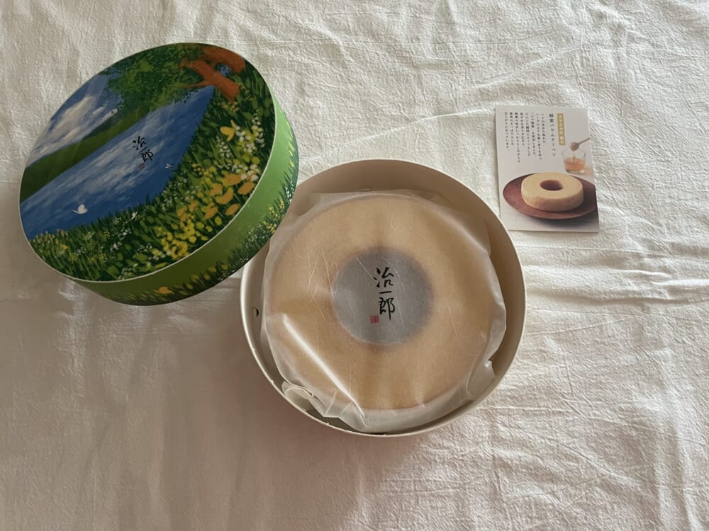 絵画を思わせるような上品なパッケージに入っています。購入したのは、本店限定「蜂蜜バウムクーヘン」です。