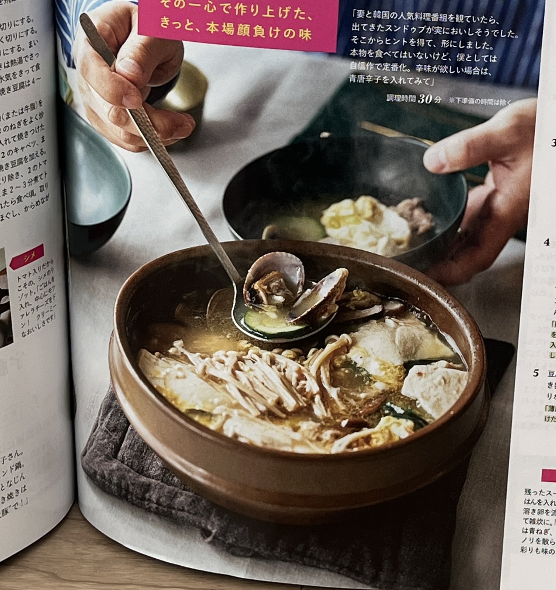 私は週3鍋でいいくらい、冬は鍋好きで、鍋のバリエーションを増やしたいなと常々思っていました。スンドゥブは好きなメニューですが、実はキムチがちょっと苦手で、、キムチなし、アサリと豚肉メインのこのメニューはぜひ試してみたいです。ズッキーニが入っているのも、自分ではとても思いつかなかったので、食べるのが楽しみです。