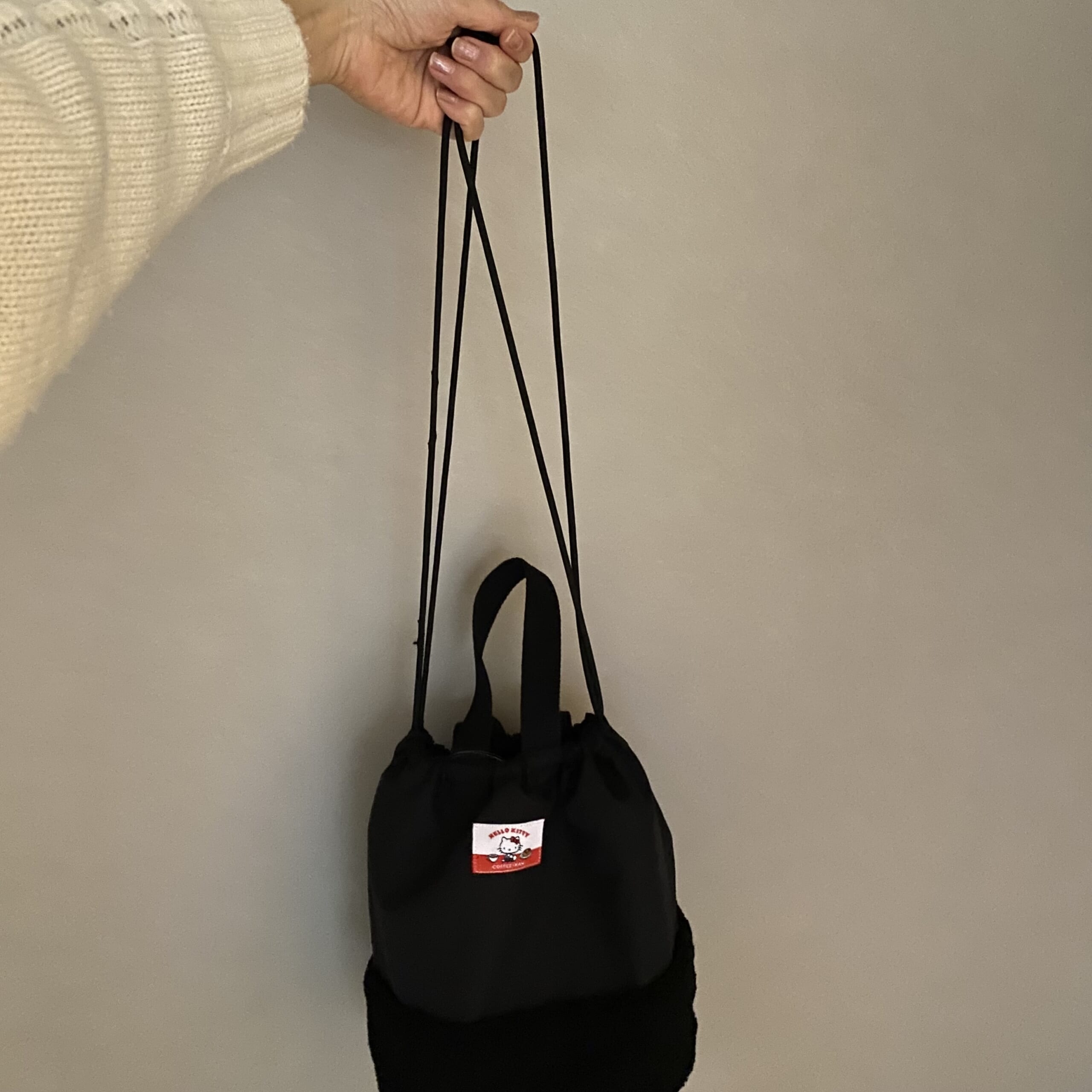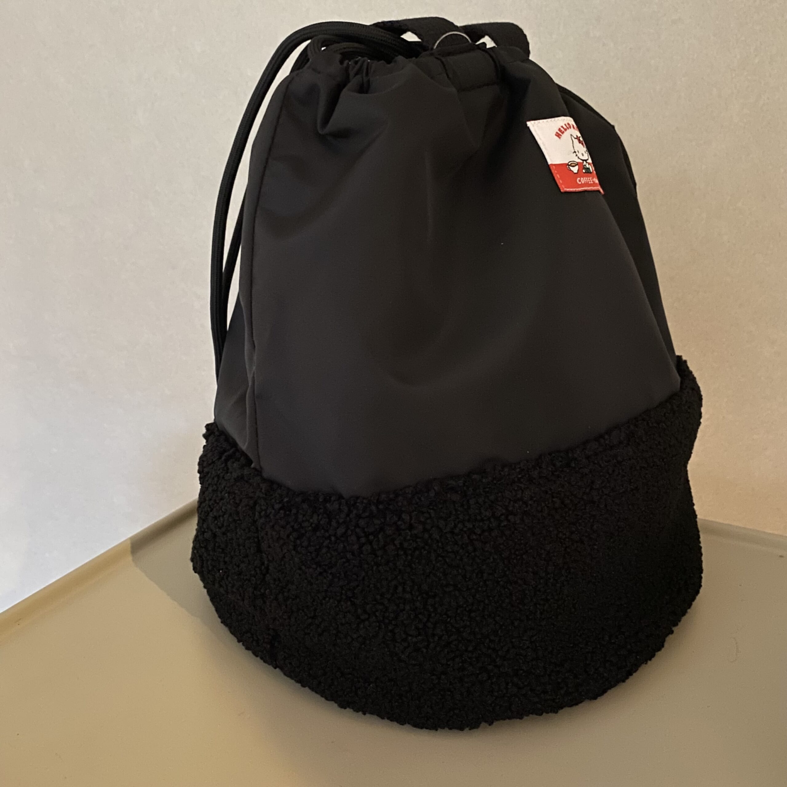 ボア巾着バッグは、マチ付き。底はまあるくて可愛い♡