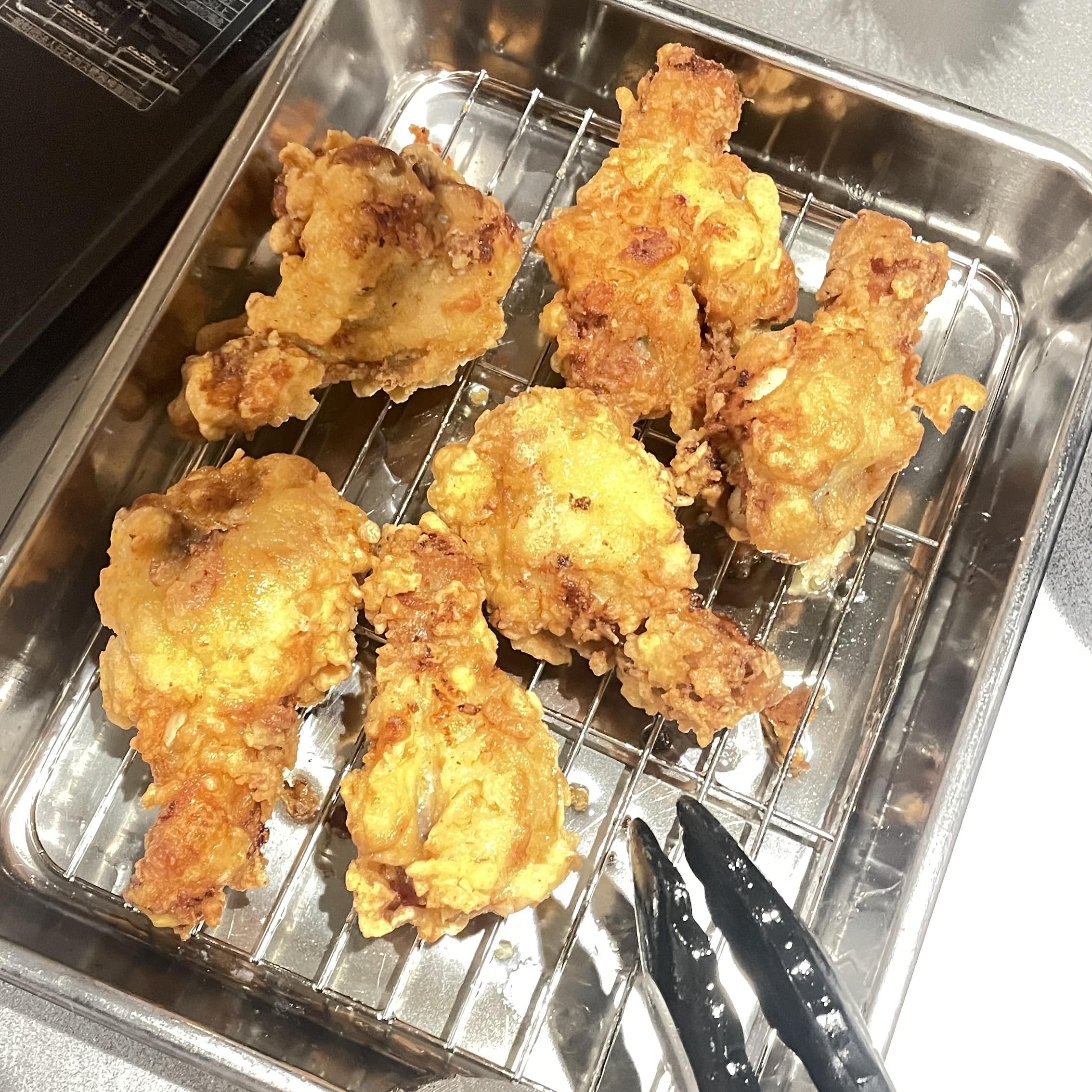 前日に準備した手羽元を揚げていく〜
