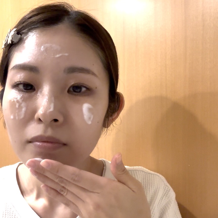 両頬→おでこ&顎 といったように摩擦しないように両手で包み込んでじゅわ~っとなじませるのが好きです。