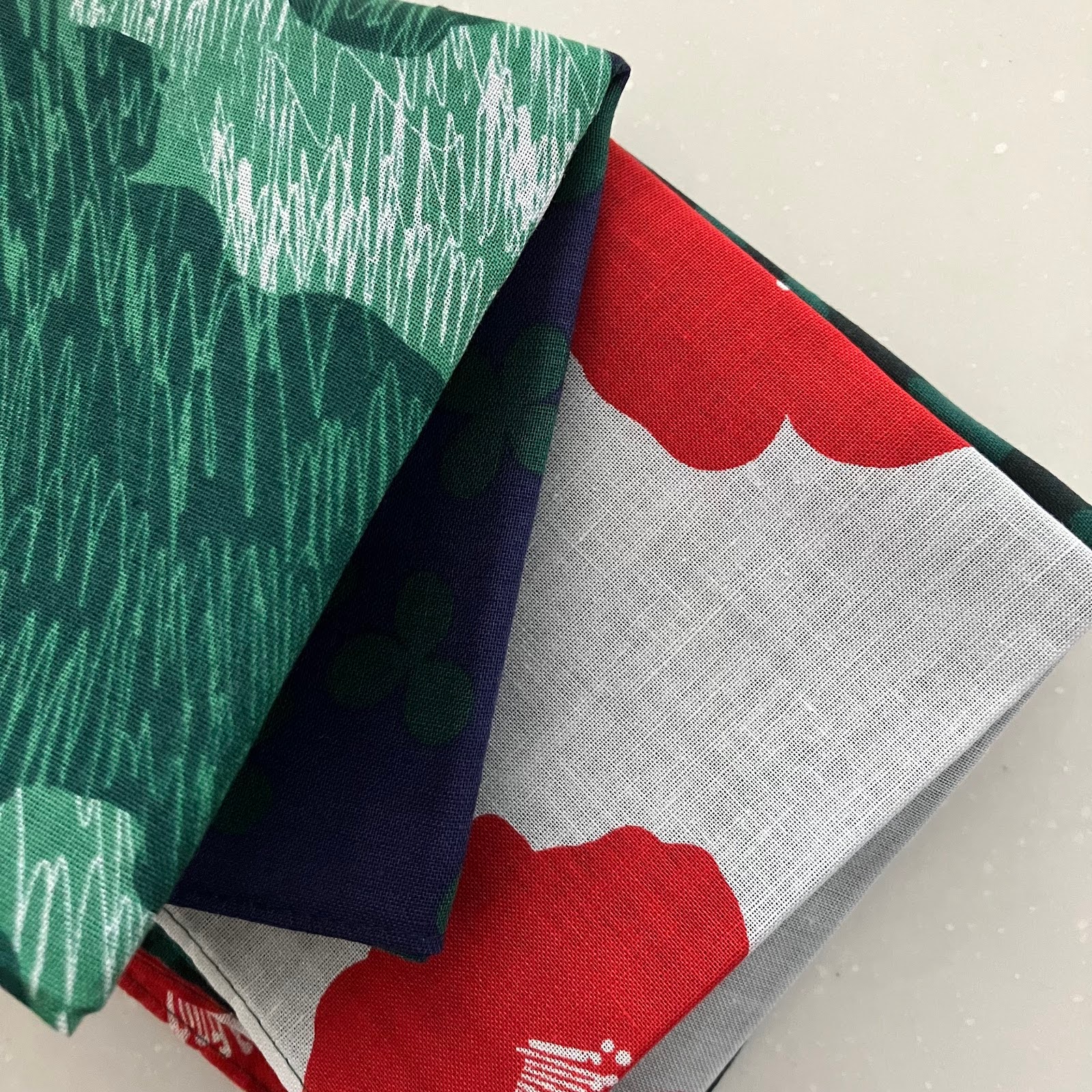 小さめのお弁当なら風呂敷みたいに包めるくらいの大きさで、ランチマットなどにも使えそう〜。