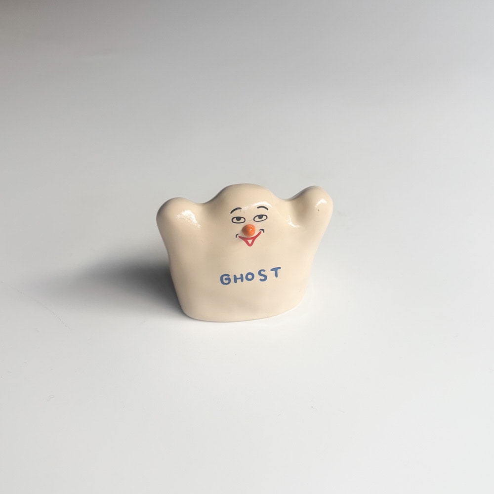 ちなみにHONGAMAさんのことを知ったのは、フードエッセイストの平野沙季子さんがプロデュースされているお店「NO)RAISIN SANDWICH(ノーレーズンサンドイッチ)」のショーケースにちょこんと佇んでいた「ゴースト」を見かけてからです。まさかお菓子屋さんで陶器に出会うなんて・・・