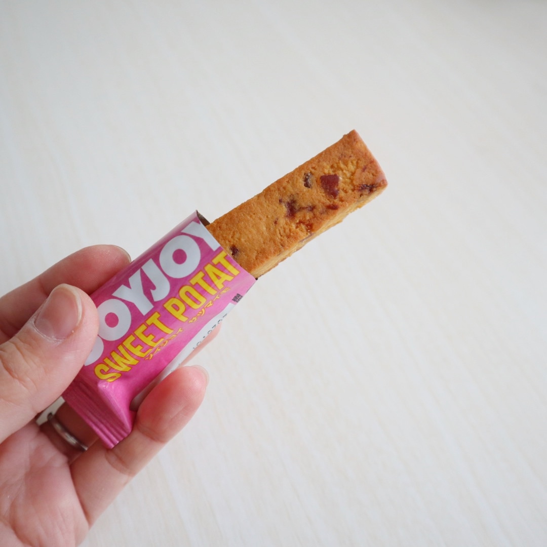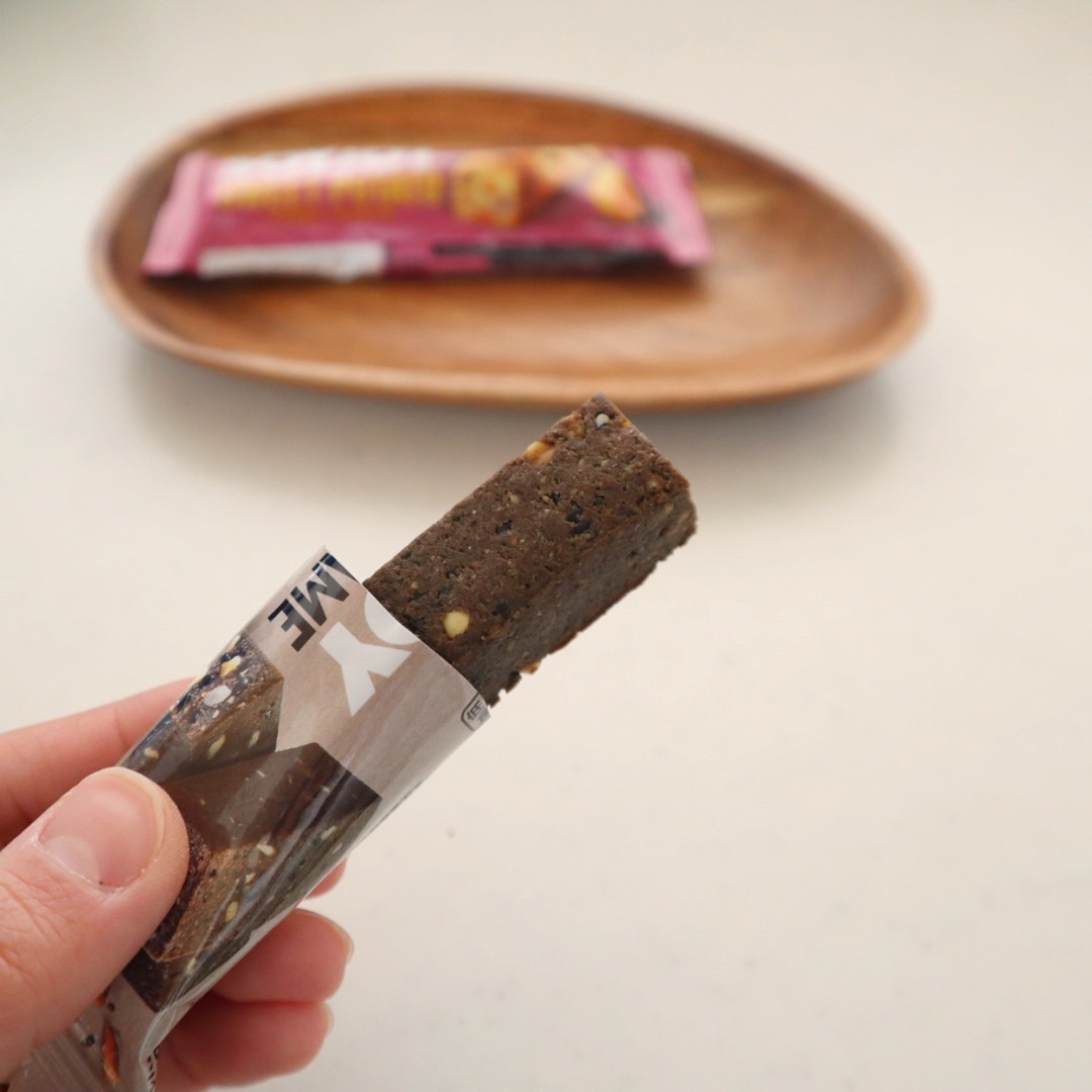 噛みごたえがあるので満足感も高く、甘すぎないのが嬉しい。小腹が空いたときや、間食を少し控えたい日にちょうどいい1本です。