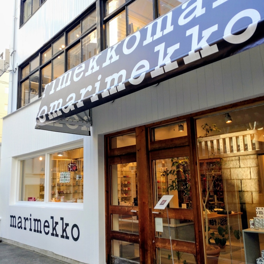 大阪の本町にあるマリメッコショップ。地下鉄御堂筋線の本町駅から歩いてすぐ。2階への階段はギャラリーになっていて、マリメッコのお家に遊びに行ったような気分になれる素敵なお店です。