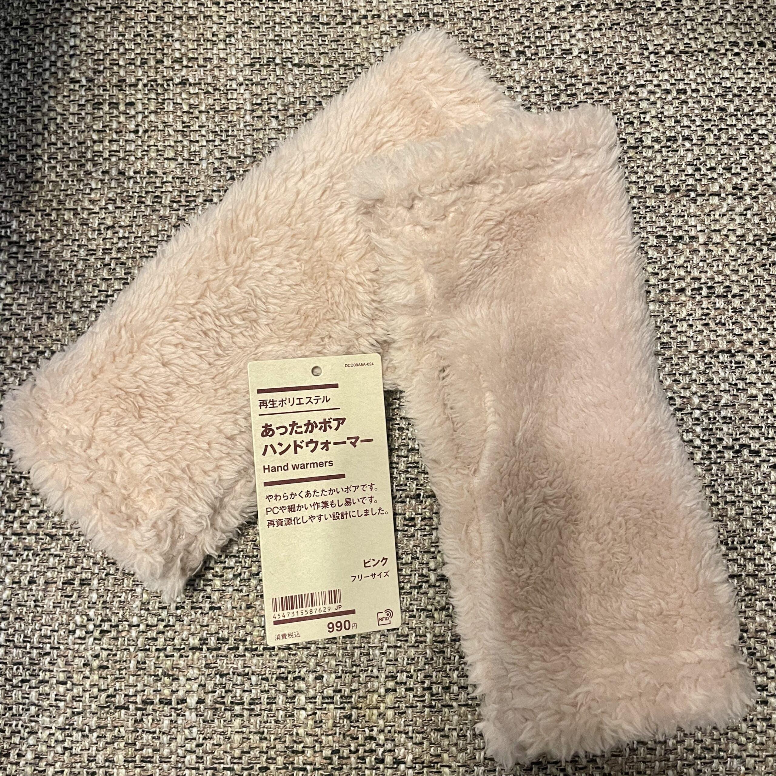 バタバタしがちな朝、ピンク色のハンドウォーマーをつけて、心穏やかに過ごしたいなと思います。